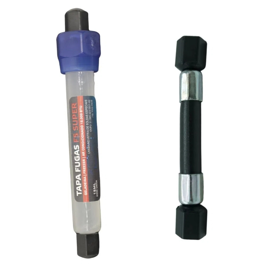 Tapa Fugas F5 Super Dose Única 8 ml para Geladeira Freezer e Ar Condicionado Descrição Tapa Fugas F5 Super com dose única de 8 ml desenvolvido para vedar vazamentos de gás refrigerante em sistemas de refrigeração e ar condicionado. Ideal para pequenos orifícios de até 0,05 mm sua fórmula líquida e incolor localiza e sela permanentemente os pontos de vazamento sem reagir com oxigênio ou umidade. Compatível com todos os tipos de gases refrigerantes incluindo CFC HFC e HCFC. Pode ser utilizado em geladeiras freezers câmaras frigoríficas e ar condicionado até aproximadamente 9000 BTU. Ficha Técnica Volume 8 ml dose única Capacidade aproximada de aplicação 9000 BTU ou 0,75 TR Tipo de vazamento que corrige até 0,05 mm Formulação líquida incolor sem polímeros Compatibilidade todos os gases refrigerantes e óleos Reação química não reage com oxigênio ou umidade Detecção visível com luz UV Aplicações Recomendadas Ar condicionado residencial até 9000 BTU Geladeiras e freezers domésticos ou comerciais Câmaras frigoríficas de pequeno porte Não indicado para sistemas com vazamentos maiores que 0,05 mm ou com danos estruturais. Tabela de Referência de Quantidade 8 ml para até 9000 BTU 10 ml para 12000 BTU ou 1 TR 15 ml para 18000 BTU ou 1,5 TR 20 ml para 24000 BTU ou 2 TR 30 ml para 36000 BTU ou 3 TR 40 ml para 48000 BTU ou 4 TR 50 ml para 60000 BTU ou 5 TR 60 ml para 72000 BTU ou 6 TR Benefícios Veda vazamentos de forma permanente Reduz ruído e vibração do compressor Não danifica o sistema e não interfere nos componentes internos Aplicação simples e direta pela válvula de serviço Evita recargas frequentes de gás refrigerante Alta compatibilidade com sistemas de refrigeração domésticos e comerciais Checklist Tapa Fugas F5 Dose Única 8 ml Para sistemas de até 9000 BTU Compatível com gases CFC HFC HCFC Sem polímeros e visível em luz UV Fácil aplicação e vedacão eficaz Conteúdo da Embalagem 1 Tapa Fugas F5 Super Dose Única 8 ml