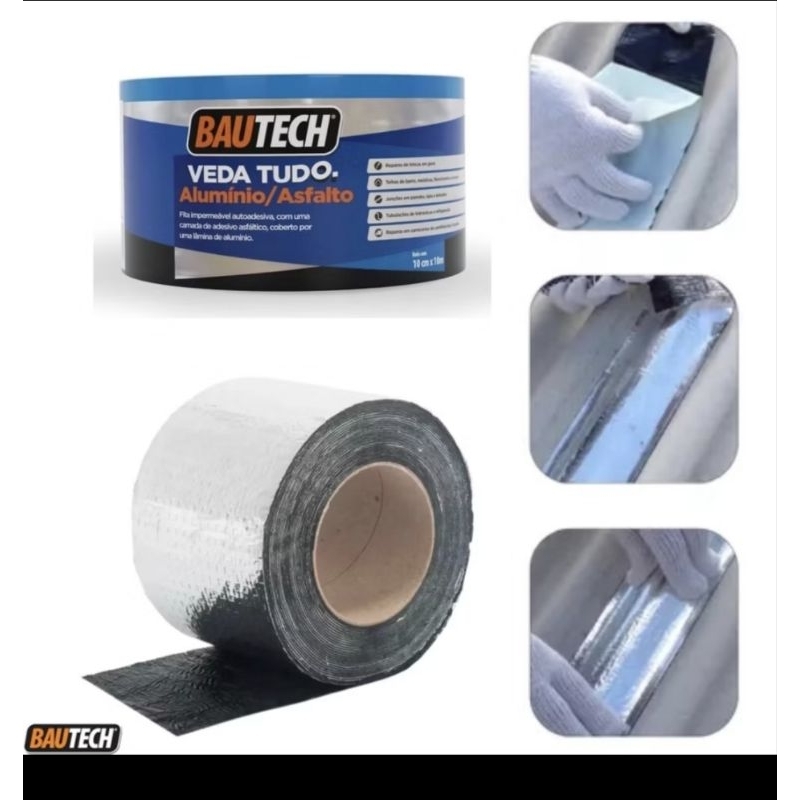 TAPA GOTEIRA FITA ASFÁLTICA Auto Adesiva Aluminizada Metalizada Impermeável reparo TELHAS LAJES BAÚ CAMINHÃO .