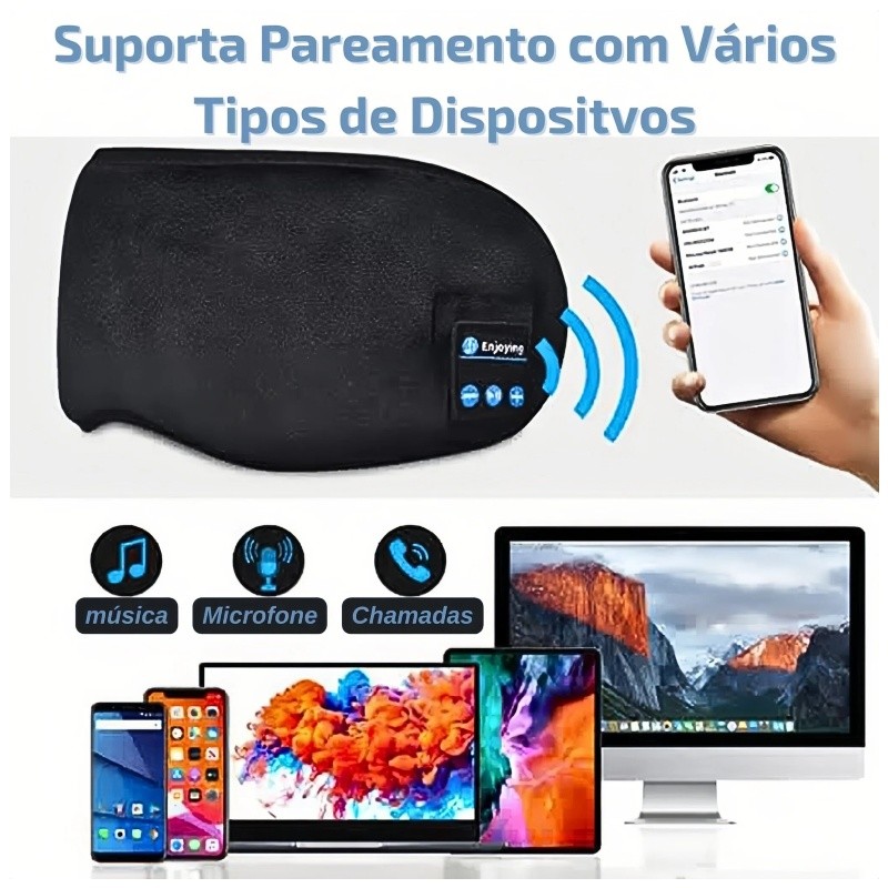 Tapa Olho Máscara Dormir Fone De Ouvido Bluetooth Confortável