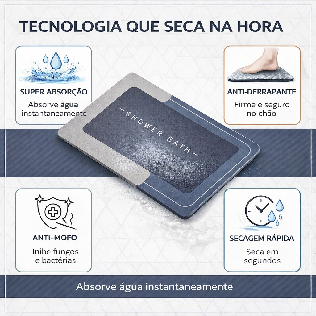 | Tapete Absorvente Antiderrapante para Banheiro 40x60 Secagem Rápida este produto | R$ 13,90 | 60% | 4.9/5 | — |