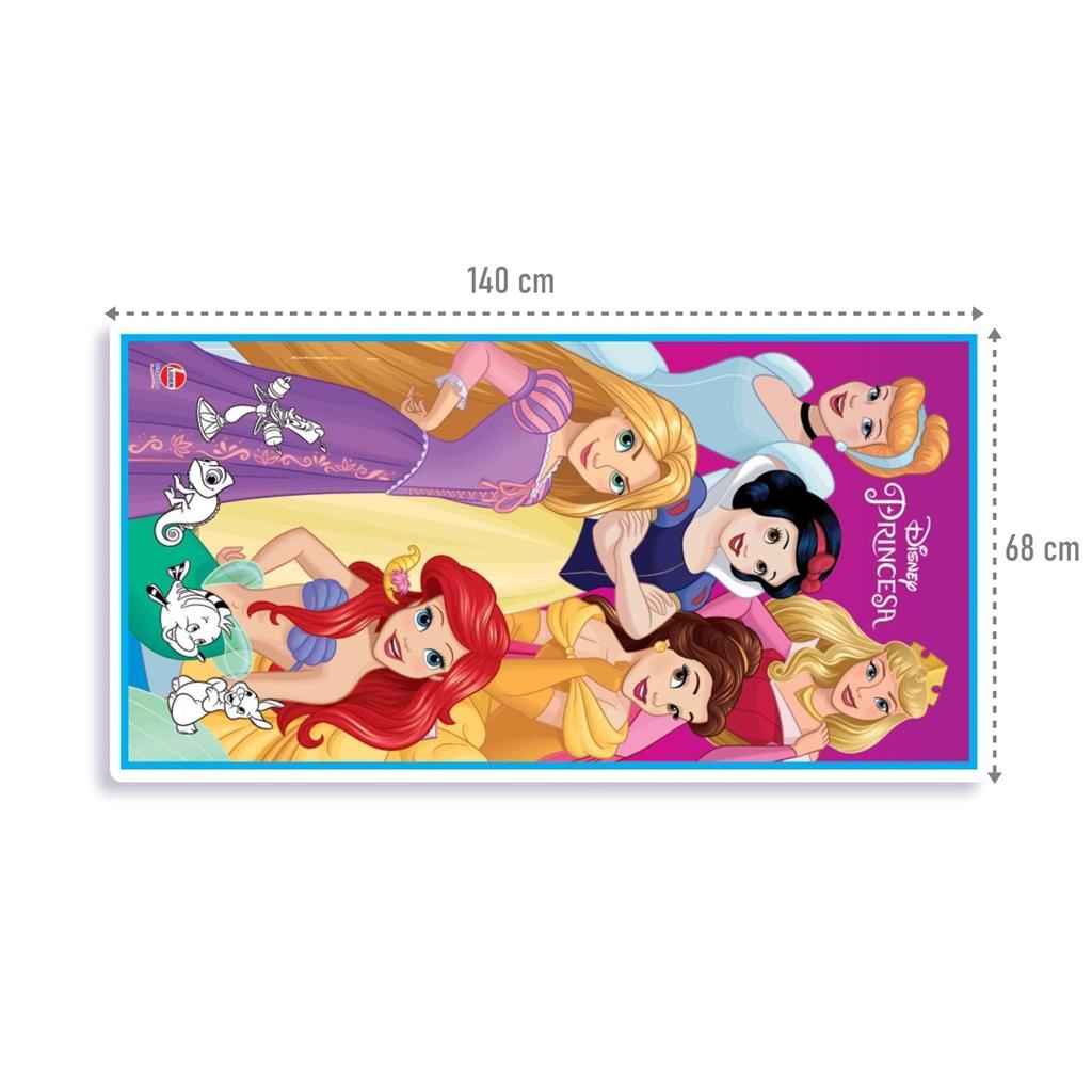 TAPETE BASE DECORATIVA PRINCESAS DISNEY - LIDER BRINQUEDOS Um lindo tapete decorado das Princesas Disney para as pequenas se divertirem! Feito em EVA macio e resistente, material com alta aderencia, protegendo de derrapagens e escorregoes. Ele ajuda a isolar o frio do pavimento, deixando a crianca a vontade, confortavel e seguro para brincar e explorar o mundo a sua volta. Possui cores vibrantes, design divertido e partes em branco com os personagens favoritos da criancada para eles pintarem, eles vao se divertir de montao! Facil de limpar e duravel, ele pode enfeitar o quarto do seu filho ou ser levado para que ele brinque com conforto e seguranca em qualquer lugar! Especificações: - Dimensoes: Comprimento: 140 cm, Largura: 70 cm - Facil de limpar e guardar - Atoxico - Superficie Macia - Cores vibrantes - Design divertido e chamativo para criancas - Material: Poliester e EVA - Licenca: Disney - Personagem: Princesas - Marca: Lider Brinquedos - Referencia: 381 - Certificado de Seguranca: INMETRO ATENCAO: Imagens meramente ilustrativas, as cores e detalhes podem variar de acordo com o lote de fabricacao.