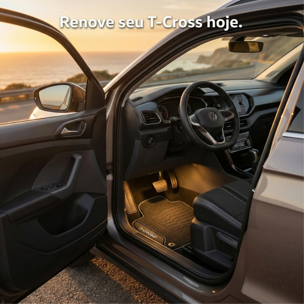 Se você tem um T-Cross, sabe como é frustrante ver o interior do carro sujar rápido. Tapetes universais escorregam, não encaixam direito e acabam deixando partes do carpete expostas. E ninguém gosta de ver o carro perder aquele aspecto de novo. Este jogo de tapetes sob medida para T-Cross 2019 até 2026 foi desenvolvido seguindo o padrão de encaixe do original de fábrica. Isso significa: encaixe correto no assoalho interior mais protegido contra sujeira aparência mais bonita dentro do carro Resultado: seu T-Cross continua com visual limpo e bem cuidado. material emborrachado e resistente encaixe correto no carro base antiderrapante - não escorrega no assoalho Fácil limpeza no dia a dia Detalhes do produto: Compatível: Volkswagen T-Cross 2019 a 2026 Modelo: sob medida padrão original Fixação: velcro + ilhós na peça do motorista Conjunto completo para o carro Se você quer manter o interior do seu T-Cross sempre bonito e protegido, este é o tapete ideal. Clique em Comprar agora e receba um conjunto feito para encaixar corretamente no seu carro.