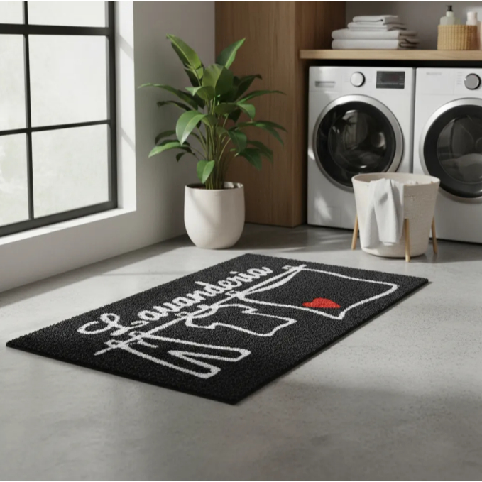 Tapete Capacho 60x40 Lavanderia Antiderrapante Roupas Decorativo porta