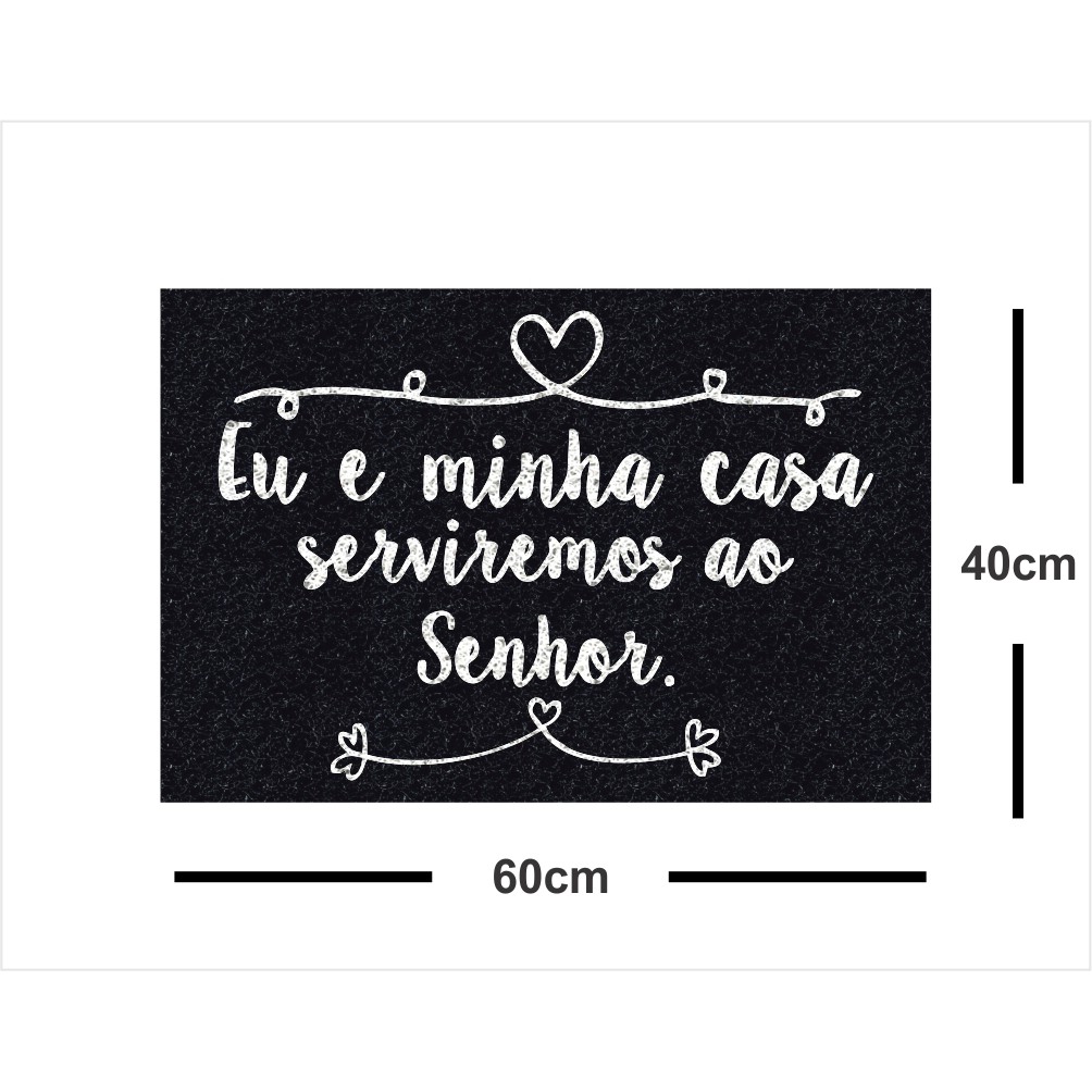 Tapete Capacho Eu Minha Casa Serviremos Ao Senhor Religioso Fé 60x40cm Preto Ouro