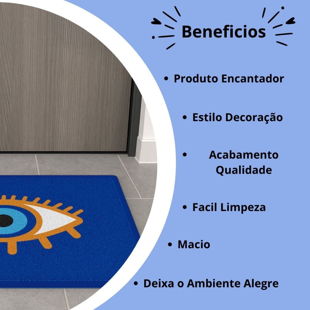 Tapete Capacho Porta Entrada Macio Antiderrapante Proteção Olho Grego Sala Quarto Cozinha Azul Luxo