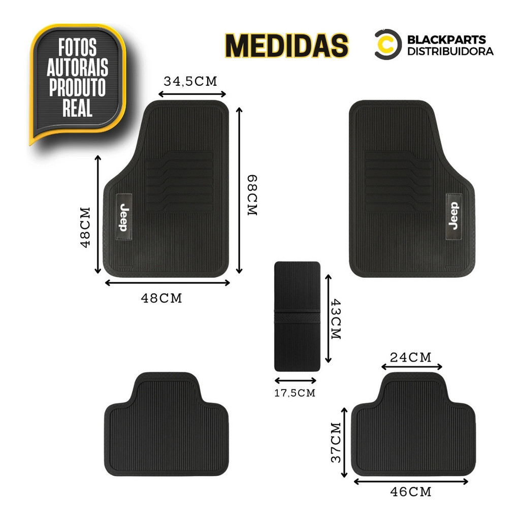 Jogo Tapete Automotivo Personalizado para carro de Borracha Macio com Base Impermeável Kit 5 Peças + Lixeira Eleve o interior do seu carro para um outro nível com nosso exclusivo Jogo de Tapetes Automotivos. Desenvolvido e personalizado com o nome montadora do veículo, este kit de tapetes com 5 peças, acompanhado por uma prática lixeira, combina o conforto do tapete macio com a durabilidade do material de borracha. A base impermeável oferece segurança e durabilidade para o carpete do veículo, garantindo um visual de luxo e versatilidade para o interior do seu carro. Características: Personalizado com Logo da Montadora Borracha de Alta Qualidade Material Macio e Maleável Base Antiderrapante Espessura 4mm Impermeável Sem odor Atenção: Todos os nossos produtos possuem fotos reais, sendo assim você receberá exatamente o produto que é oferecido nas imagens. Modelos Compatíveis: Jeep Renegade 2015 Jeep Renegade 2016 Jeep Renegade 2017 Jeep Renegade 2018 Jeep Renegade 2019 Jeep Renegade 2020 Jeep Renegade 2021 Jeep Renegade 2022 Jeep Renegade 2023 Jeep Renegade 2024 Jeep Renegade 2025 Medidas: Dianteiros: Comprimento 64cm x Largura 47cm Traseiros: Comprimento 36cm x Largura 44cm Túnel: Comprimento 17,5cm x Largura 43cm Valor do Jogo Completo (5 peças + Lixeira)