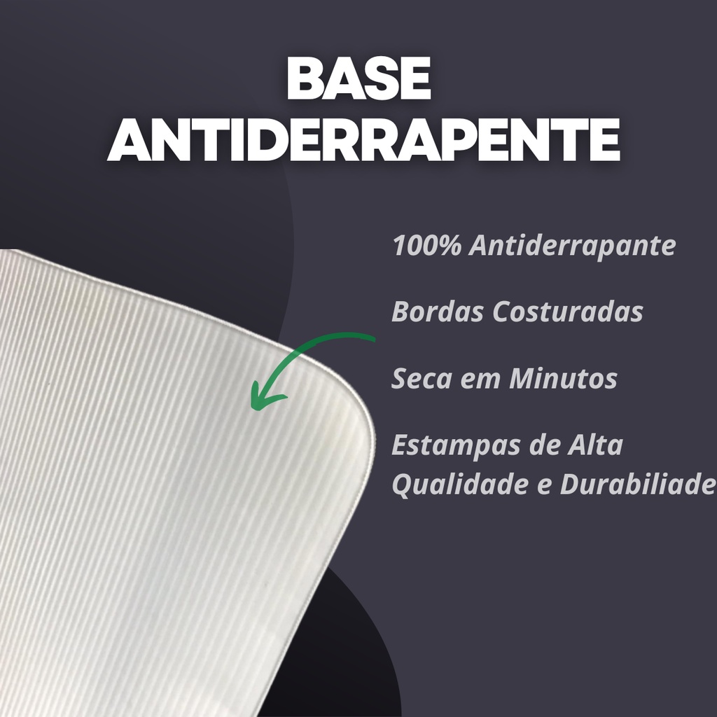 Trabalhamos com produtos de alta qualidade, a estampa feita através de transferência de tinta, sem desperdício de quaisquer matéria, ecologicamente sustentável, e sua base feita em 100% látex, tornando-o antiderrapante. Também é uma ótima opção de presente criativo e diferente. CARACTERÍSTICAS GERAIS DO PRODUTO: Tamanho: 35cm x 55cm x 2mm Material: Superfície 100% poliéster e base látex. - Antiderrapante e com Secagem Acelerada. Além disso, é fácil de higienizar e evita que escorregue devido sua base antiderrapante. MODO DE LAVAR: Não usar pregador no varal. Não secar na máquina. Não usar amaciantes. Não lavar a seco. Não utilizar ferro de passar. OBSERVAÇÕES: As medidas informadas são valores aproximados e podem sofrer alguma variação. As cores podem sofrer uma pequena variação, dependendo do lote do produto e das configurações do seu computador.