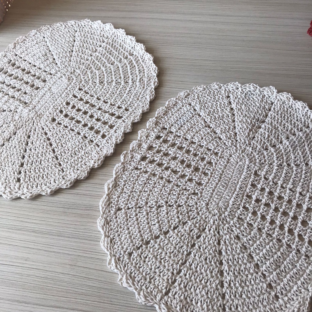 ✨ Lindo Par de Tapetes em Crochê Oval – 100% Artesanal ✨ Transforme sua casa com charme e aconchego! Esse kit exclusivo conta com 2 tapetes confeccionados à mão, feitos em crochê artesanal com barbante 100% algodão de alta qualidade. Cada peça é única, garantindo beleza, durabilidade e um toque especial para seu ambiente. 🧶💖 🔹 Detalhes do Produto: Formato: Oval Quantidade: 2 tapetes Medidas: 52 x 42 cm cada (podendo haver pequenas variações por serem feitos à mão) Material: Barbante 100% Algodão Produto novo, artesanal e de pronta entrega ✅ 🌟 Diferenciais: Peças 100% artesanais, feitas por crocheteiras experientes Confeccionados com materiais de primeira qualidade Exclusividade: cada tapete é único, feito à mão com todo carinho Mais de 3 anos de tradição no artesanato em crochê 🧵 Cuidados e Lavagem: No tanque: Encha o tanque antes de colocar o tapete. Prefira sabão líquido (ou sabão de coco para peças sensíveis). Esfregue delicadamente, sem escovas e sem torcer. Deixe secar horizontalmente, de preferência em varal de chão. Na máquina: Para peças coloridas, lave separadamente na primeira vez. Dissolva bem o sabão antes da lavagem. Utilize sempre o ciclo de Roupas Delicadas. ❌ Não centrifugar. Secar horizontalmente. 👉 Adquira agora seu par de tapetes artesanais e leve mais beleza, qualidade e aconchego para sua casa!