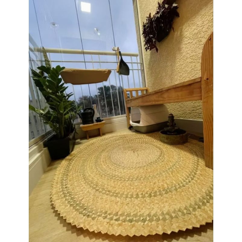 SEJA BEM VINDO A LOJA NATY DECORAÇÕES TRAGO A VOCÊS LINDO TAPETE CONFECCIONADO ARTESANALMENTE COM A PALHA DA CARNAÚBA, MUITO USADO EM DECORAÇÕES DE PAREDES OU PARA DEIXAR AQUELE CANTINHO ESPECIAL E ACONCHEGANTE. ESSES TAPETES POSSUEM UM MATERIAL BEM RESISTENTE E DURÁVEL. TAMANHO: COMPRIMENTO: 1 / 1,20 / 1,50 METRO MATERIAL: PALHA CARNAÚBA NATURAL Explore a beleza rústica e o toque único da natureza com o tapete de palha carnaúba. Cada peça é uma obra-prima artesanal que une funcionalidade e estilo de forma harmoniosa. Adicione um toque de elegância sustentável ao seu espaço com essa criação cuidadosamente elaborada pela nossa equipe de artesãos talentosos. A Naty Decorações orgulha-se de oferecer um produto que não apenas agrega valor à sua casa, mas também contribui para a preservação do meio ambiente. Adquira essa peça única e faça parte da nossa jornada em direção ao mundo mais verde. Por ser um produto artesanal, poderá sofrer alterações de cores de palha.