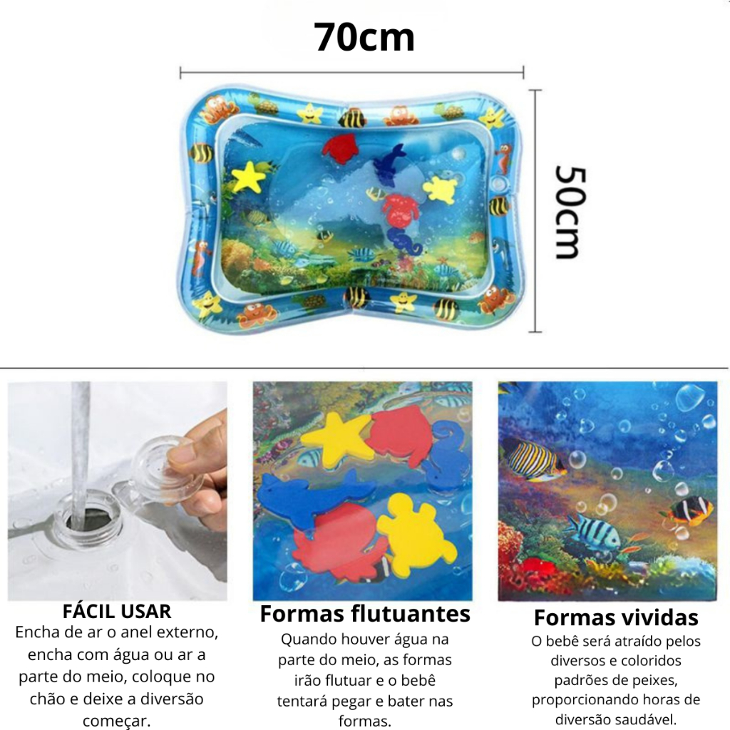 PEDIDOS CONFIRMADOS ATÉ 11HRS, SERÃO ENVIADOS NO MESMO DIA!! 🧒✅DESENVOLVIMENTO SENSORIAL: Tapete inflável com design oceânico 3D que estimula os sentidos do bebê através de cores vibrantes e texturas aquáticas interativas 🧒✅IDADE RECOMENDADA: Adequado para bebês a partir de 3 meses de idade, proporcionando diversão segura e desenvolvimento motor 🧒✅DESIGN INTERATIVO: Tapete preenchido apenas com água, apresentando adoráveis criaturas marinhas em 3D que encantam e estimulam a curiosidade do bebê 🧒✅MATERIAL SEGURO: Confeccionado com material resistente e durável, livre de vazamentos, garantindo a segurança durante as brincadeiras 🧒✅FÁCIL UTILIZAÇÃO: Sistema simples de preenchimento com água, design compacto e prático para uso em diferentes ambientes da casa