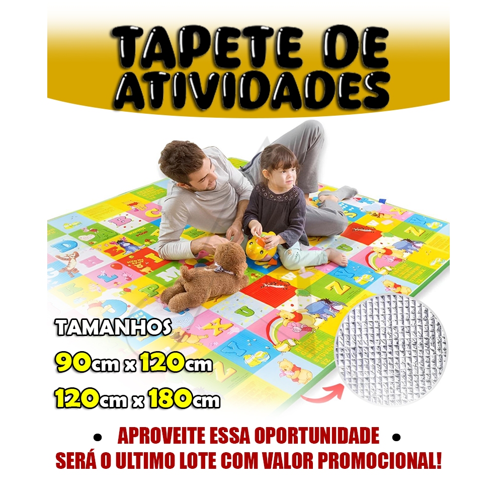 TAPETE DE ATIVIDADES TÉRMICO 180x120 EXTRA GRANDE EMBORRACHADO DOBRÁVEL GINÁSIO BEBÊ INTERATIVO EDUCATIVO INFANTIL