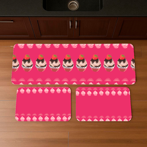 Tapete de Cozinha Cupcake Kit 3 Peças Premium Decorativa, Antiderrapante, Costura Reforçada(tpc108)