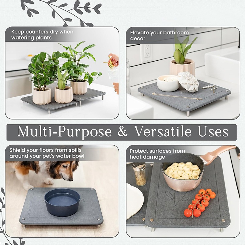 Tapete de Secagem em Pedra para Cozinha: Absorção Rápida, Resistente ao Calor
