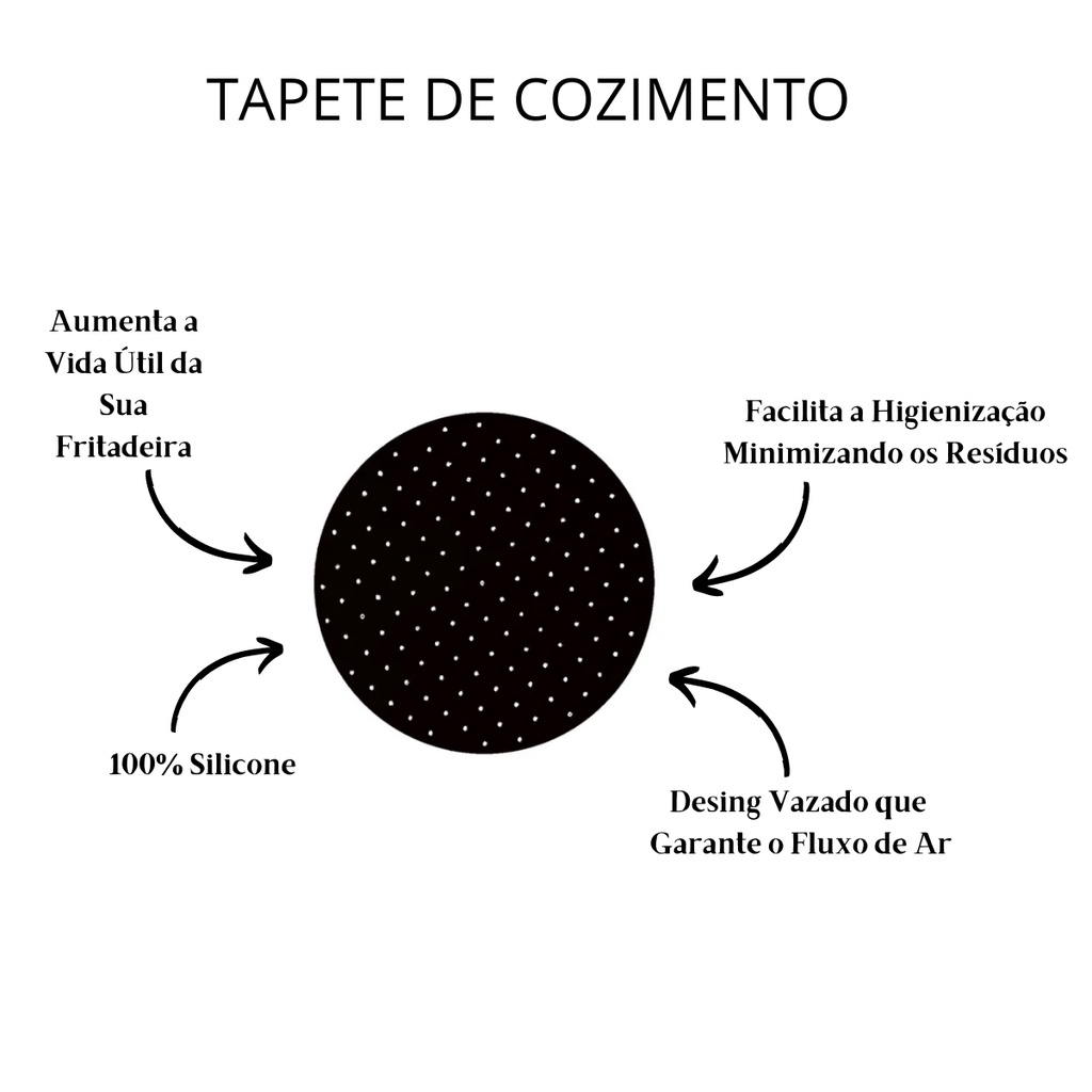 TAPETE IDEAL PARA FRIGIDEIRA PRODUTO ORIGINAL A PRONTA ENTREGA O Tapete Protetor de Silicone é indispensável para quem Fritadeira Air Fryer, sendo ideal para impedir que a comida grude e proteger o alimento de resíduos presentes no cesto. O tapete de silicone age protegendo e reduzindo a quantidade de sujeira e gordura na sua fritadeira, tornando a higienização muito mais simples e prática e aumentando o tempo de vida útil ! Confeccionado em 100% silicone super resistente e flexível, esse produto aguenta altas temperaturas, suportando até 240° Graus Celsius. Com seu design vazado, o tapete de silicone não interrompe o fluxo de ar, permitindo uma distribuição igualitária de calor, ou seja, não atrapalha o preparo das suas receitas. Além disso, o tapete de silicone é totalmente reutilizável e conta com tecnologia BPA FREE, ou seja, é atóxico para a saúde, além de ser muito bom para o meio ambiente! CARACTERISTICAS - Silicone - BPA FREE - Suporta até 240°C - 22,5cm X 0,2cm CLINK: Fundada em 2011, a Clink procura no seu dia a dia alcançar a excelência em atendimento e serviços transparentes.