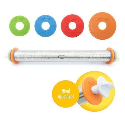 Rolo de Massa em Inox Ajustável. Super versátil e robusto, ideal para abrir massa de diversas receitas! Possui anéis para regular a altura de acordo com sua necessidade. Produto de excelente qualidade! Confira as nossas avaliações! O Rolo de Massa com medidas Ajustável funciona iguais aos rolos de massa tradicionais com a diferença de que os anéis reguláveis permitem nivelar a altura da massa de acordo com a receita. Para ajustar a espessura, basta escolher o anel correspondente e rosquear no rolo. Sugestão de uso: - Anel 2mm: ideal para macarrão - Anel 3 mm: ideal para panqueca - Anel 6mm: ideal para biscoito - Anel 10mm: ideal para pizza Feito em aço inox, possui excelente qualidade e por ser antiaderente, permite rolar sobre a massa de forma suave, garantindo uma abertura homogênea. Além disso, o rolo possui medidas para garantir precisão em suas receitas! Informações sobre o produto: - Material: Aço Inoxidável e Plástico; - Antiaderente; - Possui marcações em milímetros e polegadas no corpo do rolo; - Acompanha 8 anéis para regulagem de espessura da massa; - Totalmente desmontável para limpeza; - Pode ser utilizado em altas ou baixas temperaturas; - Design inovador e moderno; Dimensões: Comprimento: 43 cm (total com os discos) Comprimento do rolo: 35cm Diâmetro: 4,5 cm Tapete de silicone culinária 50cm x 40cm para cozinha DISPONIVEL NAS CORES : AZUL, VERMELHO E ROSA ( ENVIO ALEATÓRIO) O tapete culinário silicone antiaderente é excelente para abertura de massas de qualquer tipo ou tamanho, por ser antiaderente faz com que os alimentos possam ser manejados em cima do tapete sem risco de grudar. Além disso, o material em silicone permite que o tapete seja levado em altas temperaturas sem a possibilidade de queimaduras e sem a necessidade de untar. Um tapete pronto para assar. Produto prático que você precisa ter na sua cozinha. Feito com silicone resistente e com base antiaderente serve para abrir massas de qualquer tipo e tamanho, enrolar alimentos como rocambole e sushi e, ainda, para untar a forma. Os alimentos não grudam e você pode lavar na lava-louças, facilitando a limpeza. Aproveite mais esta praticidade no seu dia a dia. Características : Tapete Culinário Liso Composição: Silicone Suporta até 220°C Material antiaderente Tamanho: 50 cm x 40 cm Peso: 150g A COR VAI DE ACORDO COM NOSSA DISPONIBILIDADE ENVIO IMEDIATO