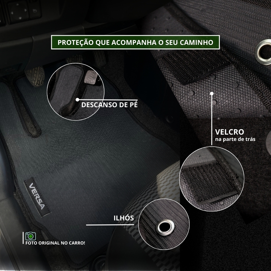 Produto em estoque, envio imediato! Os tapetes Automotivos frisados oferecem uma combinação de estética, conforto, isolamento acústico, ajuste personalizado, proteção e facilidade de limpeza. Estética - Os tapetes frisados oferecem ao interior do veículo uma aparência mais e elegante e sofisticada. Conforto - Toque suave e macio para os pés, tornando a experiência de condução mais confortável. Isolamento Acústico – Ajuda a reduzir o ruído da estrada, melhorando a acústica do veículo e tornando a condução mais agravável. Proteção – Protege o assoalho do carro contra sujeira, desgaste e danos, prolongando a vida útil do piso. Fácil de limpar – Fáceis de limpar com aspirador de pó e produtos especializados, ajudando a manter o interior do veículo limpo e higiênico. Detalhes e Características: Tapete Emborrachado automotivo novo de ótima qualidade; Base feita em PVC antiderrapante; Resistente e inodoro; Espessura de 4mm; Fabricado em Polipropileno; Mesmo material das montadoras; Encaixe sob Medida; Corte específico para o seu carro; Bordas em Nylon; Garantia contra defeito de fabricação; Ilhós Modelo cujo título do anuncio Anuncio protegido por lei n° 9.279, de 14 de Maio de 1996, de propriedade intelectual, a cópia parcial ou integral de textos e imagens é um ato ilegal. Aplicação: Versa 2011 a 2019 Conteúdo da Embalagem 3 Peças: 2 Tapetes dianteiros 1 Tapete traseiro inteiriço Tapete Versa 2011 Tapete Versa 2012 Tapete Versa 2013 Tapete Versa 2014 Tapete Versa 2015 Tapete Versa 2016 Tapete Versa 2017 Tapete Versa 2018 Tapete Versa 2019