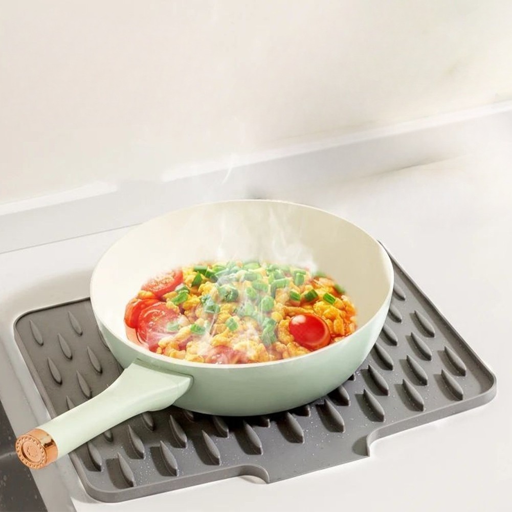 Tapete Escorredor de Louça com Dreno – Silicone Flexível, Antiderrapante e Resistente ao Calor Mantenha sua bancada sempre seca e organizada com este tapete escorredor de alta performance. Desenvolvido para oferecer praticidade e higiene no dia a dia, ele é a solução ideal para quem quer uma cozinha mais limpa e funcional. Drenagem e secagem rápidas: o design com inclinação exclusiva e ranhuras profundas direciona a água diretamente para a pia, evitando acúmulo e manchas. A estrutura favorece a circulação de ar, garantindo que copos, pratos e utensílios sequem rapidamente. Material de silicone flexível: fácil de limpar, basta enxaguar ou passar um pano úmido. Leve e dobrável, pode ser armazenado de forma compacta, economizando espaço e permanecendo sempre à mão. Resistente ao calor e multifuncional: suporta temperaturas de até 230 °C, podendo ser usado como base para panelas e frigideiras quentes. Também funciona como tapete para secagem na pia, área de preparação de alimentos ou até como tapete para alimentação de pets. Tamanho: 23 x 30 cm Superfície antiderrapante para maior segurança Estrutura durável, feita para uso prolongado Versatilidade para diferentes funções na cozinha Ideal para quem busca praticidade, organização e um toque moderno para a bancada da cozinha.
