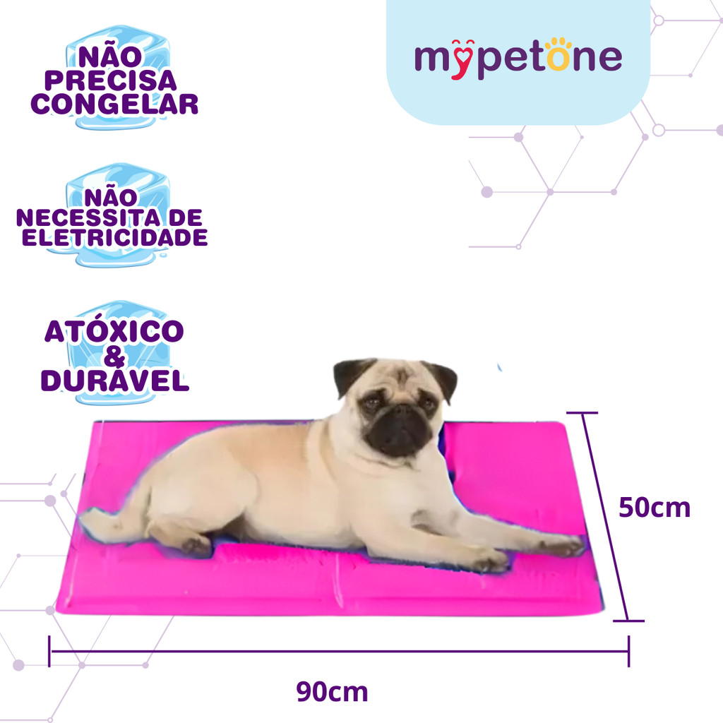 Tapete Gelado Mypetone 50x90 Tamanho Grande para Cães - Rosa - Refrescância e cuidado com a saúde do pet; - Mantém seu pet fresquinho; - Dobrável e portátil; - Diminui a temperatura em até 4 graus; - Resfria em contato com o corpo do pet. Detalhes O Tapete Gelado Mypetone 50x90 Tamanho Grande para Cães - Rosa é ideal para manter o seu animal relaxado e refrescado mesmo nos dias mais quentes do ano. Seu enchimento em gel atóxico, permite baixar a sensação térmica em até 4°C. Dicas Especiais O Tapete Gelado Mypetone 50x90 Tamanho Grande para Cães - Rosa serve para oferecer conforto térmico para o seu cachorro durante os dias e estações mais quentes do ano. Além disso, ele pode ser usado para aliviar sintomas de doenças nas articulações e promover o bem-estar de animais idosos. Modo de Usar: Para usar o Tapete Gelado Mypetone 50x90 Tamanho Grande para Cães - Rosa e proporcionar um local refrescante para o seu cão, é muito simples. Basta retirar uma unidade do pacote e colocar no local da casa predileto do pet. Dicas Para garantir a melhor conservação do seu tapete gelado pet, basta seguir algumas orientações da fabricante. São elas: - O tapete pode ser lavado; - Não exponha ao sol; - Não pendure por muito tempo; - Não lavar a máquina; - Para higienizar utilize água e esponja macia sem esfregar; - Seque com uma toalha macia, mantendo-o aberto. Indicação: Cachorros Porte/Raça: Raças Médias, Raças Grandes Idade: Filhotes, Adultos, Idosos Composição: nylon, espuma e gel Apresentação: Contém 1 Unidade Tamanho: Grande