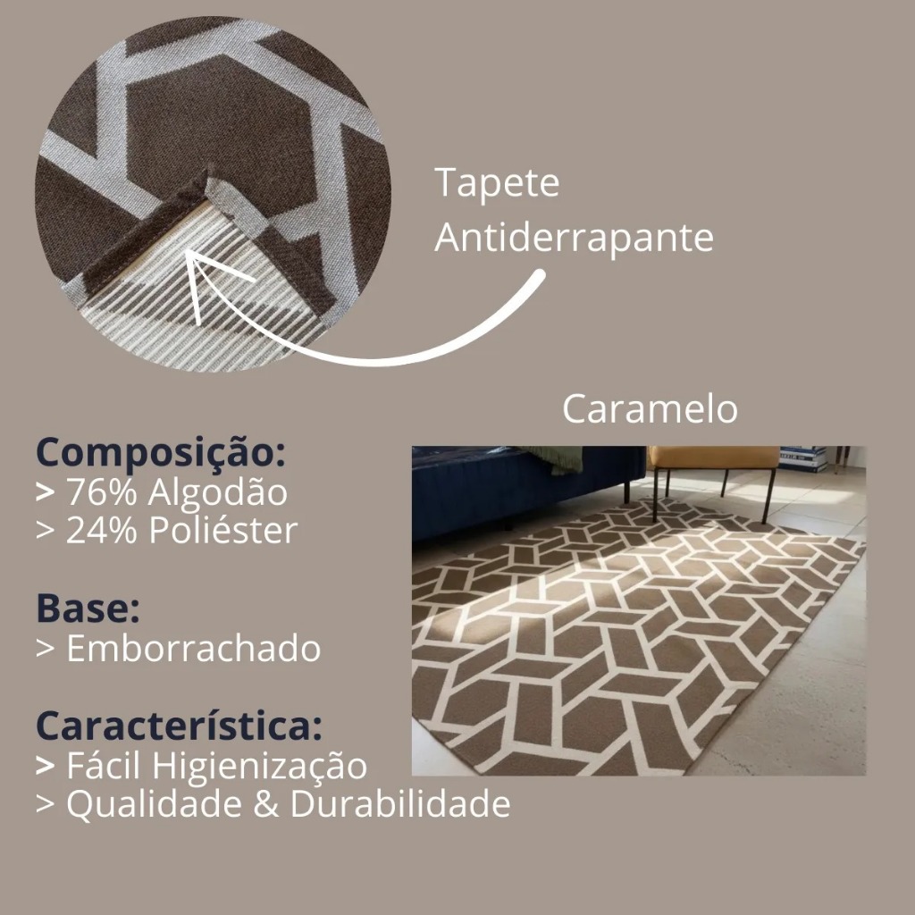 | Tapete Geométrico Emborrachado Antiderrapante Ideal Sala Quarto Dec... este produto | R$ 72,90 | — | 4.8/5 | 29 |