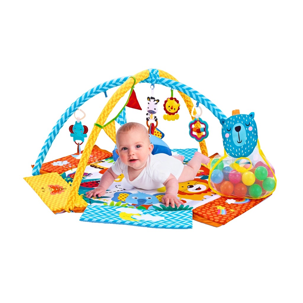 Tapete Ginásio de Atividades Para Bebê Party Azul Maxi Baby Apresentamos o Tapete Ginásio de Atividades Para Bebê Party da Maxi Baby, um espaço de diversão e desenvolvimento para os pequenos! Este tapete de atividades colorido e interativo é perfeito para bebês a partir de 2 meses (suportando até 18 kg), proporcionando horas de entretenimento e aprendizado. Com um design 2 em 1, o tapete mede 120 x 100 x 55 cm quando aberto e vem equipado com duas barras e cinco brinquedos estimulantes. Inclui bolas coloridas, chocalhos de plástico, bandeiras de pelúcia e um travesseiro em formato de animal, oferecendo uma variedade de texturas e sons para estimular os sentidos do bebê. Além disso, acompanha um saco de bolas de caton, adicionando ainda mais diversão. Fabricado com materiais de alta qualidade, como poliéster e ABS, este tapete é seguro, durável e fácil de limpar. A embalagem em caixa de cores torna-o uma excelente opção de presente. Transforme a brincadeira em uma festa diária com o Tapete de Brincar Bebê - Festa! Principais Características: - Idade Recomendada: A partir de 2 meses - Design 2 em 1 - Desenvolvimento Tátil: Os brinquedos pendurados promovem o desenvolvimento muscular dos braços e pernas do bebê - Coordenação Motora: Aos 6 meses o bebê já começa a ficar sentado, treinando a capacidade motora e flexibilidade com os brinquedos - Segurança e Durabilidade: Materiais de alta qualidade, seguros e fáceis de limpar - Embalagem: Caixa de cores, ideal para presente - Brinquedos estimulantes - Travesseiro em formato de animal - Material de alta qualidade - Capacidade de Peso: Suporta até 18 kg Especificações Técnicas: - Conteúdo da Embalagem: 1 Tapete, 2 Arcos, 5 Brinquedos estimulantes 1 Travesseiro em formato de animal, 1 Saco de bolas de caton - Composição/ Material:Poliéster e ABS - Dimensões: 120 x 100 x 55 cm aprox. (aberto) - Dimensões: 61,0 x 50,0 x 10,0 cm aprox. (fechado) - Garantia: 30 Dias (Contra Defeito de Fabricação Pelo Fabricante) - Certificação INMETRO: 007915/2022 - Código do Fabricante: 21708 - EAN: 7899403217084 - Marca: Maxi Baby Fotos Ilustrativas! Cores e Modelos podem mudar conforme o lote de fabricação.