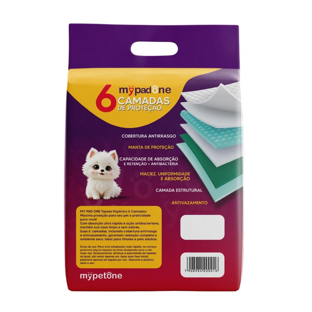 🐾 Tapete Higiênico My Pad One – A Solução Ideal para o Seu Pet! Quer praticidade, higiene e conforto para o seu pet? O Tapete Higiênico My Pad One é a escolha perfeita para manter sua casa sempre limpa e sem odores! Cada pacote vem com 50 unidades (50x60cm), oferecendo uma área de absorção generosa (40x50cm) que garante proteção contra vazamentos e facilita o adestramento. ✨ Características que fazem a diferença ✅ Tamanho ideal: 50cm x 60cm, com espaço suficiente para seu pet. ✅ Alta absorção: tecnologia que suga líquidos rapidamente, mantendo o ambiente seco. ✅ Mais grosso e resistente: maior retenção e segurança contra poças. ✅ Atrativo canino: incentiva o pet a usar o tapete corretamente. ✅ Controle total de vazamentos: gel superabsorvente + bordas reforçadas. 🌟 Benefícios para você e seu pet 🐶 Facilita o adestramento com rapidez e eficácia. 🏡 Mantém sua casa limpa e livre de odores. 🧹 Prático de usar e descartar. 💰 Economia: maior durabilidade e absorção em cada unidade. ❤️ Bem-estar e conforto garantidos para o seu pet. 🏆 Indicado para: 🐾 Filhotes em fase de treinamento. 🐾 Cães idosos ou doentes com dificuldade de locomoção. 🐾 Pets com necessidades especiais que precisam de cuidados extras. 🐾 Casas com pisos delicados, protegendo contra manchas e umidade. 👉 Garanta já o seu Tapete Higiênico My Pad One e tenha mais conforto para o seu pet e praticidade para o seu dia a dia! 🐕✨