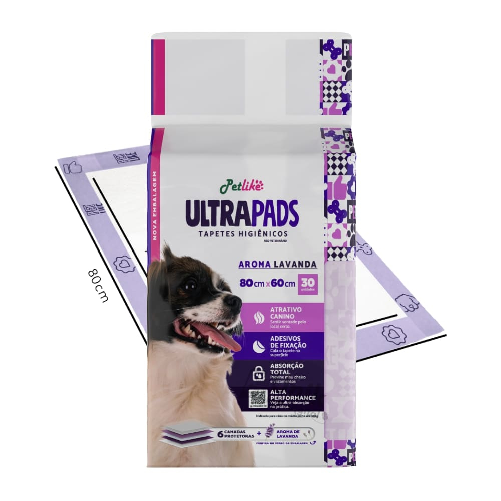 Tapete Higiênico Cães e Gatos Ultra Pads 80x60cm c/ 90un Lavanda Petlike