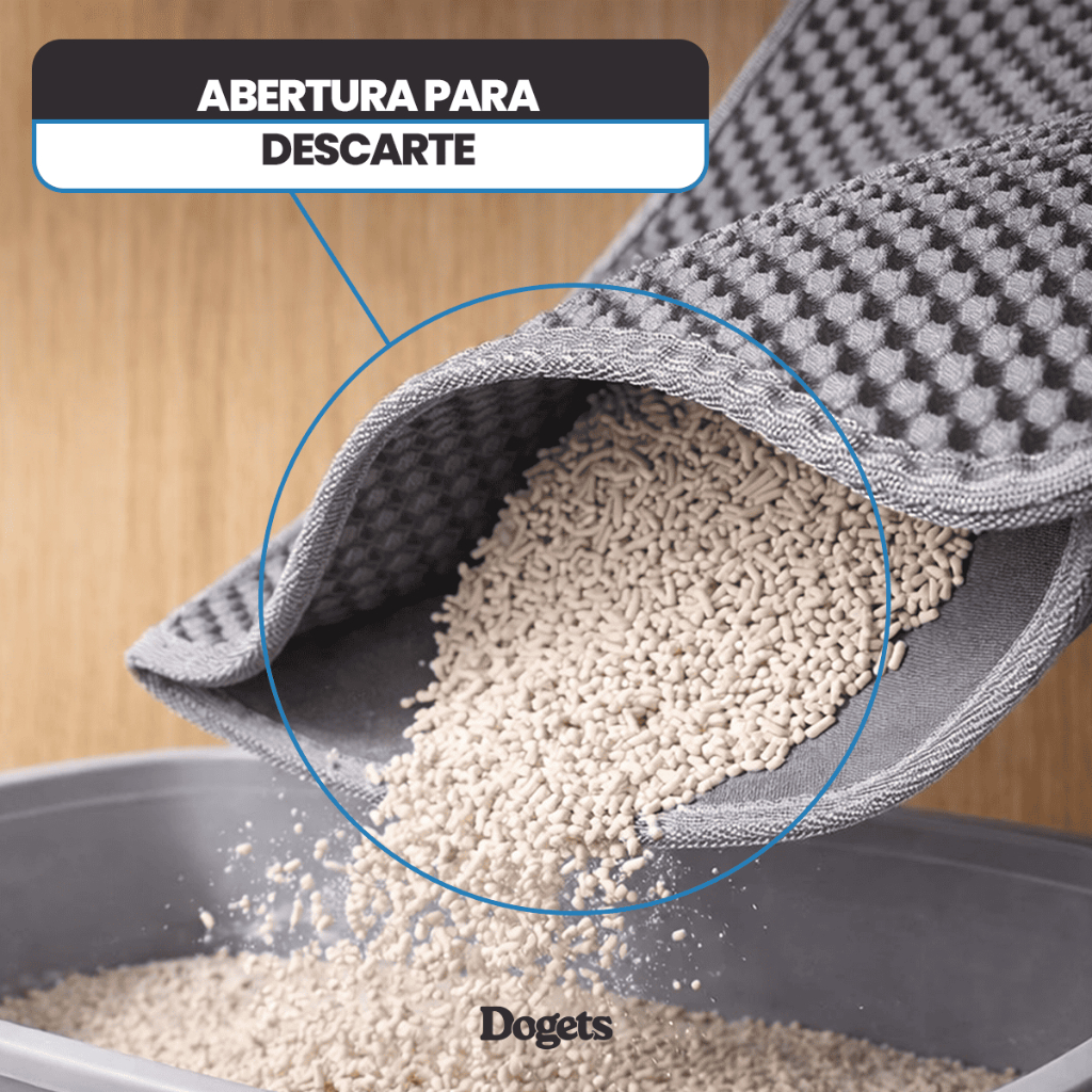 🐾 Apresentação O Tapete Coletor de Areia Dogets foi projetado com um sistema de camada dupla que "captura" os grãos de areia presos nas patas do seu gato assim que ele sai da caixa. Com um design discreto e moderno, ele se adapta perfeitamente a qualquer ambiente, seja na lavanderia, no quarto ou na sala. 🛠️ Modo de Uso Posicione o tapete logo na saída da caixa de areia ou banheiro do seu gato. Certifique-se de que o felino precise pisar nele ao sair. Conforme o gato caminha sobre a superfície, a areia cai pelos furos e fica retida na camada interna. Quando notar que há areia acumulada, basta abrir a lateral e despejar o excesso de volta na caixa. ✨ Características Design de Camada Dupla: Funciona como um envelope que armazena os resíduos. Material Premium: Fabricado em material leve, durável e macio para as patas sensíveis dos gatos. Higiênico: Superfície lavável e fácil de limpar. Dimensões: 60cm de comprimento x 40cm de largura x 1,5cm de espessura. Antiderrapante: Mantém-se firme no lugar mesmo com a movimentação do pet. 🚀 Funcionalidade A principal magia está na textura perfurada. Os furos são largos o suficiente para deixar passar diversos tipos de granulados (areia comum, sílica ou pellets), mantendo a sujeira escondida entre as camadas. Isso evita que você pise em grãos de areia e garante que o chão permaneça sempre limpo. 💡 Dica de Ouro Economia Inteligente: Como a areia coletada dentro do tapete está limpa (pois caiu diretamente das patas), você pode reaproveitá-la 100%! Basta devolvê-la para a caixa de areia uma vez por dia. Isso reduz o desperdício e faz o seu pacote de areia durar muito mais. 📦 Itens Inclusos 01 Tapete Coletor de Areia Dogets (Cinza). 🐱 Diga adeus à vassoura e aproveite mais tempo com seu gatinho em uma casa impecável!