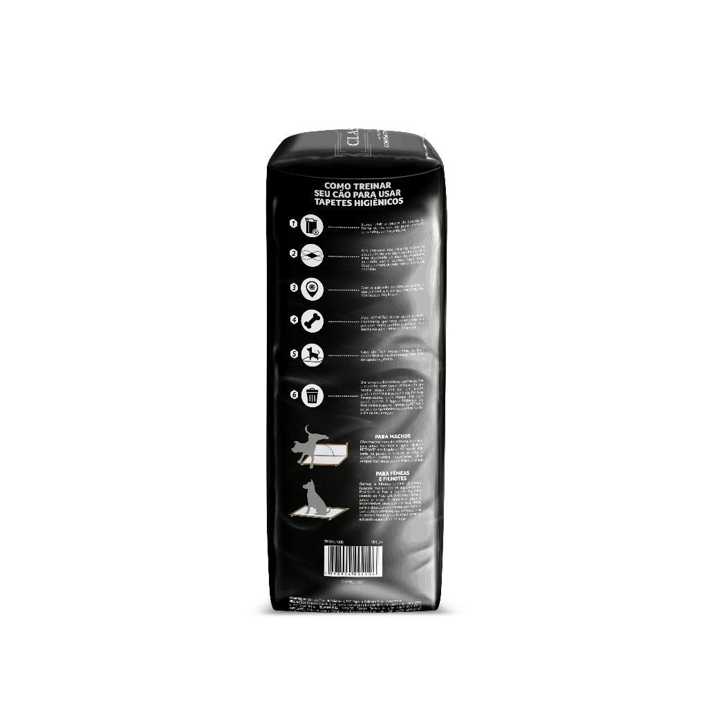 O Tapete Higiênico Petmais Classic Super Premium possui abas fixantes e um atrativo canino para estimular o cachorro a fazer suas necessidades no local designado. Para ensinar filhotes e cães que não estão acostumados com tapetes higiênicos, inicialmente cubra uma área ampla e vá removendo um tapete por dia até que reste somente um. Isso ajudará o cão a reconhecer o local apropriado para suas necessidades. Coloque o tapete com o lado plástico para baixo, longe da água e comida do animal. Para machos adultos, instale o tapete na parede e no chão em um ângulo de 90º. Para fêmeas e filhotes, fixe o tapete apenas no chão. Utilize as fitas adesivas para garantir uma boa fixação. Nos primeiros dias, leve o cão até o tapete frequentemente para que ele detecte o odor do atrativo. Durante a fase de adaptação, recompense o cão cada vez que ele usar o tapete corretamente. Se o pet fizer suas necessidades em outro lugar, leve-o imediatamente ao tapete. Com o tempo, ele se habituará a usar o tapete higiênico. Especificações Técnicas: - Material - Celulose, Gel, Papel, Plástico; - Auxilia no adestramento do cão; - Reduz odores desagradáveis; - Mantém as patas secas; - Contém fitas adesivas para melhor fixação; - Adequado para todas as raças e idades. - Dimensões: 90x60 cm - Área de Absorção: 80 cm x 55cm - Quantidade: 30 Unidades - Marca: Petmais
