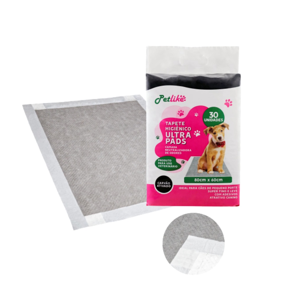 Tapete Higiênico Para Cães Ultra Pads 80x60cm 30 un Carvão Cães e Gatos Petlike Original