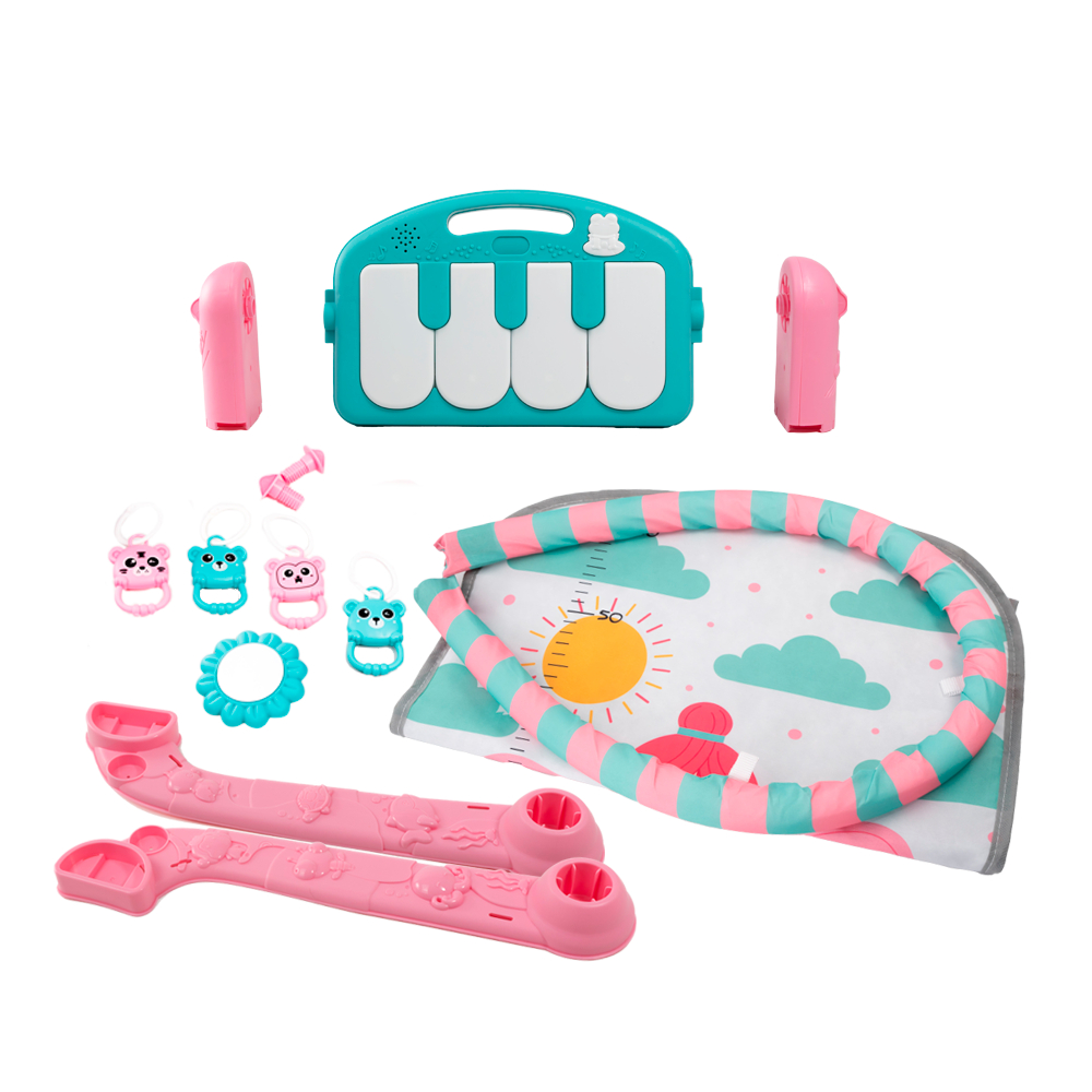 Tapete Infantil Atividades Bebê c/ Piano Musical, Móbile, Brinquedos Sensorial, Arco Educativo