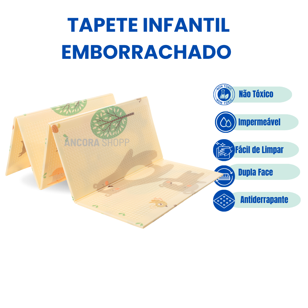 Tapete Infantil de Atividades Dupla Face Urso Tatame Térmico Emborrachado 180 cm x 120 cm x 1CM Proporcione mais conforto, segurança e estímulo à imaginação dos pequenos com o Tapete Infantil de Atividades Dupla Face Urso. Com design lúdico, superfície térmica e material emborrachado, é ideal para transformar qualquer ambiente em um espaço acolhedor e educativo. 🧸 Características Principais: Dimensões Generosas: 180 cm de comprimento x 120 cm de largura, oferecendo ampla área para as crianças brincarem, engatinharem ou descansarem com liberdade. Espessura Ideal: 1CM de acolchoamento, perfeito para proteger contra impactos e isolar do frio do piso. Material de Alta Qualidade: Fabricado em material emborrachado, antialérgico e resistente. A tecnologia térmica proporciona uma superfície sempre agradável ao toque, ideal para o uso direto no chão. Design Dupla Face: Fácil de Limpar: A superfície impermeável facilita a limpeza com pano úmido, evitando acúmulo de poeira e líquidos. Dobrável e Portátil: Leve e fácil de dobrar, pode ser transportado ou guardado sem esforço — ideal para uso em casa, viagens ou áreas externas. Antiderrapante: Superfície com propriedades antiderrapantes que garantem mais segurança durante as atividades e brincadeiras. 👶 Benefícios para o Desenvolvimento Infantil: Estimula o raciocínio visual e a imaginação com elementos lúdicos e cores suaves. Cria um ambiente confortável para brincar, aprender, descansar ou fazer atividades educativas. Pode ser utilizado como tatame, área de leitura, cantinho de descanso ou apoio para brinquedos educativos. Indicado para: Bebês, crianças em fase de desenvolvimento, pais que valorizam conforto e ambientes funcionais com toque de carinho. ⚖️ Aviso Legal — Proteção de Conteúdo e Marca: Todos os conteúdos, imagens e descrições deste produto estão protegidos pela Lei da Propriedade Industrial (Lei nº 9.279/96) e pela Lei de Direitos Autorais (Lei nº 9.610/98). A reprodução, imitação ou uso não autorizado, total ou parcial, constitui infração legal passível de penalidades civis e criminais. Marca registrada. Conteúdo de uso exclusivo. Direitos reservados.