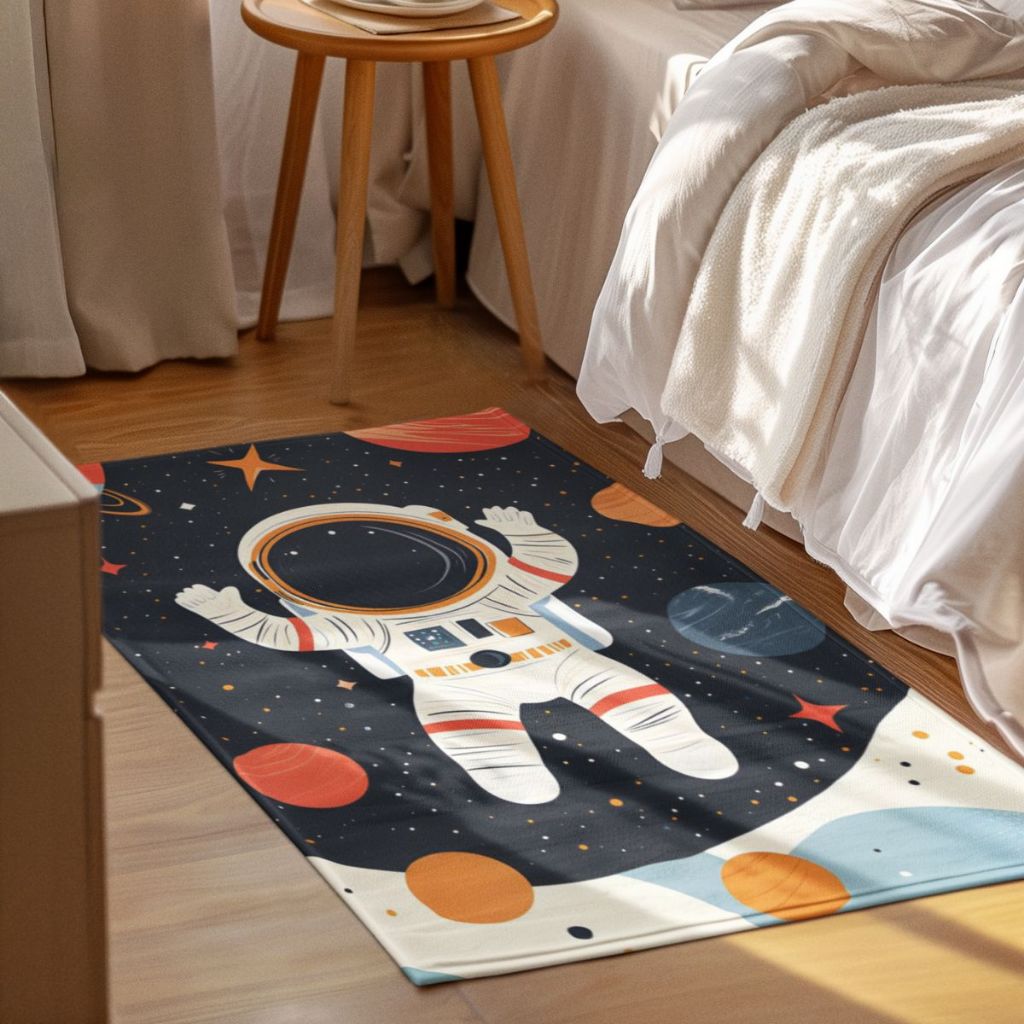 Tapete Infantil Decorativo 118x70cm Antiderrapante Sala, Quarto e Escritório Astronauta Espaço