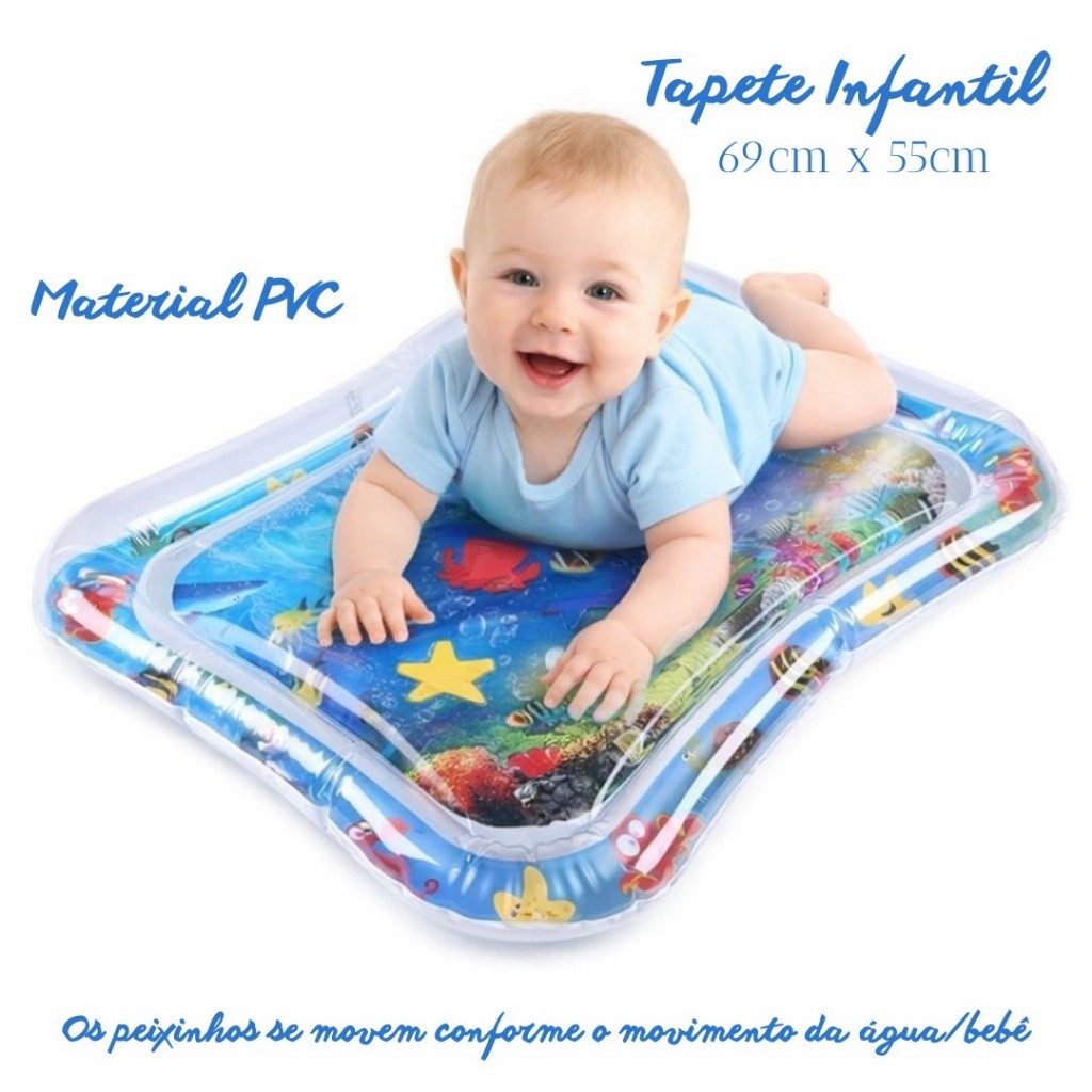 Tapete Infantil Divertido Inflável Com Água Interativo Bebê Menina Menino Prático e confortável ajuda a exercitar as habilidades motoras de estimulação sensorial e habilidades cognitivas do seu bebê. Vem com estampas coloridas e divertidas com bichinhos flutuantes. Fácil de montar, é só encher a parte do meio com água e a parte lateral com ar. Ideal para divertir e estimular seu bebê. Benefícios e Características: - Brinquedo interativo - Animais flutuantes - Pode esvaziar e levar para viagem - Os peixinhos se movem conforme o movimento da água/bebe. - Prático, compacto, portátil e fácil de guardar - Pediatras recomendam colocar os bebês de barriga para baixo para ajudar a fortalecer a perna e os músculos do braço, para prepará-los para engatinhar. - Material: PVC - Medidas da embalagem: 69cm x 55cm