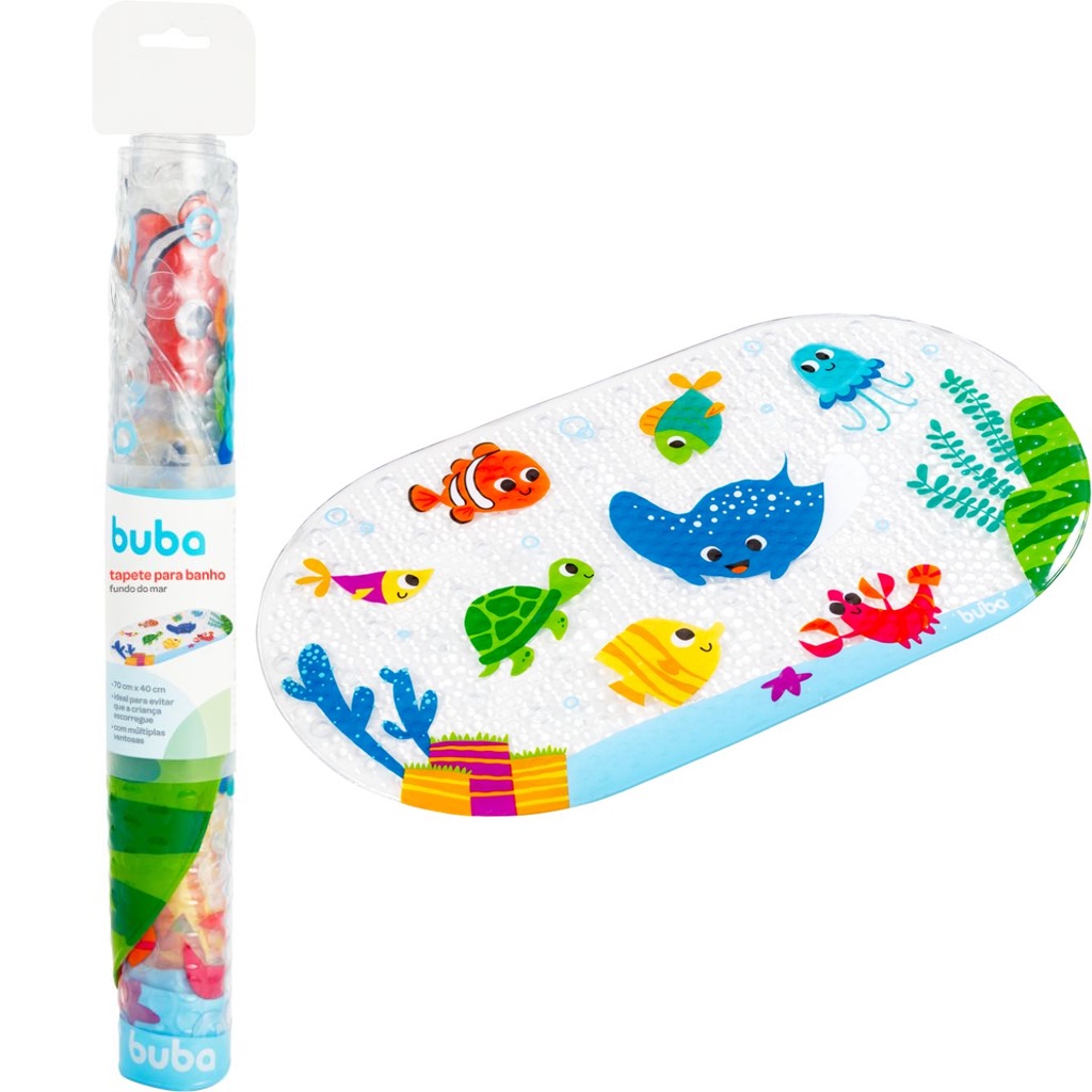 DESCRIÇÃO DO PRODUTO: Os tapetes de banho da Buba foram desenvolvidos para garantir a segurança na hora do banho. Com ele, você pode ficar despreocupado e curtir esse momento tão gostoso com seu pequeno. Com múltiplas ventosas que fixam o tapete no chão e sua superfície antiderrapante, previne os escorregamentos. A estampa lúdica estimula a criatividade e as brincadeiras garantindo um banho cheio de diversão! - Tamanho: 39 x 69cm - Ideal para evitar que a criança escorregue. - Múltiplas ventosas que fixam o tapete no chão. - Superfície antiderrapante previne os escorregamentos. - Segurança na hora do banho! CARACTERÍSTICAS TÉCNICAS: Conteúdo da Embalagem: 01 Tapete para banho fundo do mar. Dimensões Aproximadas do Produto: 69cm x 39cm (Comprimento x Largura) Dimensões Aproximadas da Embalagem: 6cm x 9cm x 47cm (Altura x Largura x Comprimento/Profundidade) Material/Composição: 100% Policloreto de Vinila (PVC). Marca: Buba Referência: 17220 Outras informações: As cores podem variar entre as imagens mostradas acima e o produto. Imagens meramente ilustrativas. Aviso: As informações e imagens divulgadas são de total responsabilidade do fabricante/fornecedor. Produto lacrado e disponível a pronta entrega para todo Brasil! APROVADO PELO INMETRO