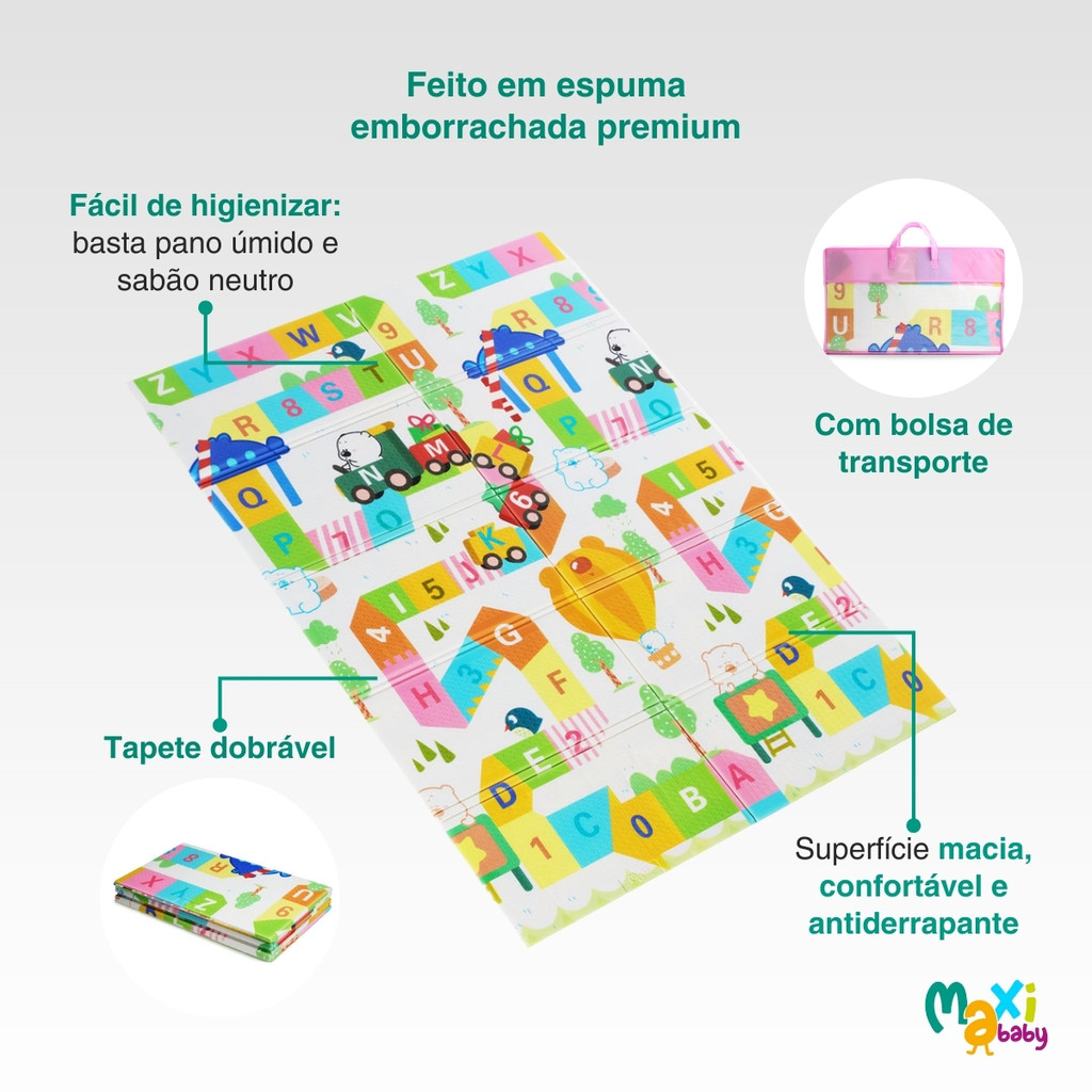 Tapete de Atividades Infantil Tatame Dobrável Emborrachado Dupla Face Playroom ABC Maxi Baby O Tapete Infantil Emborrachado Playroom da Maxi Baby foi desenvolvido para oferecer conforto, segurança e diversão em um único produto, transformando qualquer ambiente em um espaço acolhedor, lúdico e ideal para o tummy time do bebê. Perfeito para as primeiras descobertas, ele proporciona uma área ampla e macia para engatinhar, rolar, brincar, explorar e dar os primeiros passos com total tranquilidade. Produzido em espuma XPE premium de alta densidade, o tapete oferece uma superfície acolchoada, confortável e antiderrapante, protegendo o bebê do contato direto com o chão. Seu material é não tóxico, livre de BPA, inodoro e isento de produtos químicos nocivos, garantindo segurança desde os primeiros meses de vida. Dupla face, dobrável e educativo, apresenta estampas coloridas e envolventes em ambos os lados, estimulando o desenvolvimento cognitivo, sensorial e visual da criança. O design versátil permite alternar as estampas, integrando-se facilmente a diferentes ambientes, como quarto, sala, brinquedoteca ou espaço kids. Com medidas generosas de 1,80m x 1,20m x 0,8cm, oferece espaço suficiente para as atividades do bebê e também para momentos de interação e vínculo familiar. Resistente ao uso diário e fácil de limpar, pode ser utilizado como tatame infantil para diversas brincadeiras, além de funcionar como um bonito item decorativo. Ideal para uso interno e externo, o tapete acompanha bolsa de transporte, garantindo praticidade para levar para passeios, viagens ou qualquer lugar onde o bebê precise de um espaço seguro para brincar. Maxi Baby é sinônimo de cuidado, suavidade e proteção. Uma linha criada para oferecer mais tranquilidade aos pais e bem-estar aos pequenos desde os primeiros dias de vida. Principais Características: - Idade Recomendada: A Partir do Nascimento - Modelo: ABC - Dupla Face - Dobrável - Emborrachado - Atóxico, Livre de BPA, Inodoro e livre Químicos Nocivos - Acolchoada, Confortável e Antiderrapante - Pode ser utilizado como Tatame - Transfer em Alta Definição - Estampas Coloridas e Envolventes em Ambos os Lados - Estimula o Desenvolvimento Cognitivo, Sensorial e Visual - Ideal para uso interno e externo - Acompanha Bolsa de Transporte - Espuma XPE Premium Especificações Técnicas: - Conteúdo da Embalagem: 1 Tapete Playroom ABC Maxi Baby - Dimensões do Produto (AxLxP): 180,0 x 120,0 x 0,08cm - Composição/Material: Espuma XPE - Peso: 0,552kgs - Garantia: 90 dias (Contra defeitos de fabricação pelo fabricante) - Código do Fabricante: 75203 - EAN: 7898975752030 - Marca: Maxi Baby Imagens meramente ilustrativas, as cores e estampas podem variar de acordo com o lote do fabricante.
