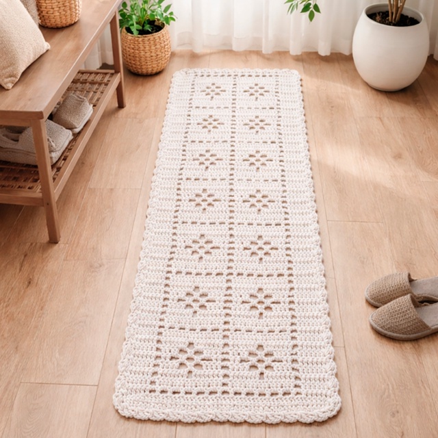 Tapete Passadeira Crochê 1,20m x 40cm Deixe seu ambiente mais elegante e acolhedor com a passadeira modelo Aranha em crochê, produzida em 100% algodão de alta qualidade. Com medidas de 1,20 m x 40 cm, é perfeita para compor a decoração de cozinhas, corredores, áreas de serviço ou ao lado da cama, trazendo charme e praticidade para o dia a dia. Sua trama em algodão proporciona toque macio, resistência e ótima durabilidade, sendo ideal para o uso diário. Além de valorizar a decoração, a passadeira também ajuda a reter sujeiras e poeiras dos calçados, contribuindo para manter o ambiente mais limpo e organizado. PRINCIPAIS BENEFÍCIOS Produzida em 100% algodão de alta qualidade Trama estilo crochê modelo Aranha decorativa Toque macio e confortável Resistente e durável para o uso diário Ideal para diversos ambientes da casa CARACTERÍSTICAS DO PRODUTO Tipo: Tapete Passadeira Decorativo Material: 100% Algodão Medidas: 1,20 m x 40 cm Trama resistente e decorativa Excelente acabamento ITENS INCLUSOS 1 Tapete Passadeira Aranha Crochê 1,20 m x 40 cm Garanta agora sua passadeira Aranha em crochê e deixe seu ambiente mais bonito, confortável e acolhedor!