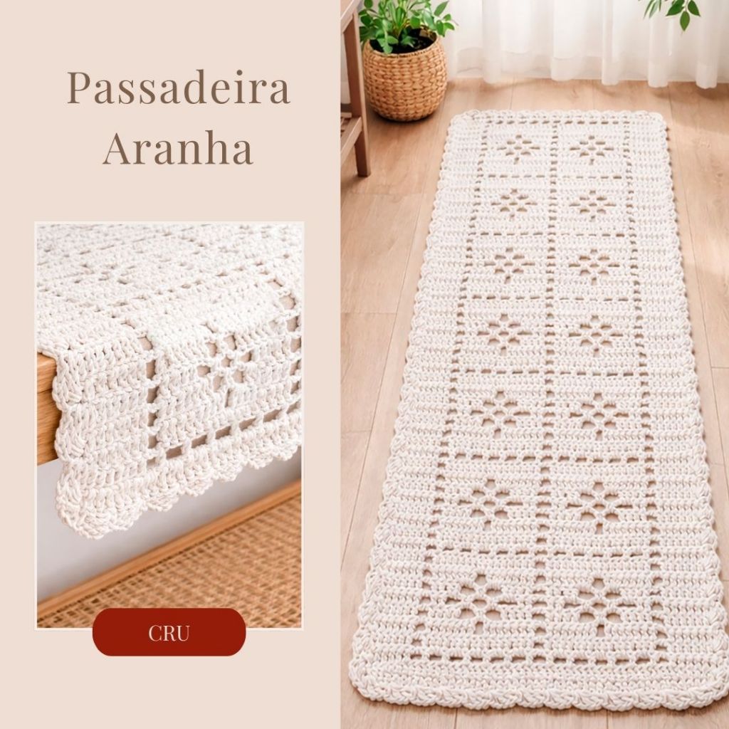 Tapete Passadeira Aranha Em Crochê 100% Algodão 1,20m x 40cm Artesanal Decorativo