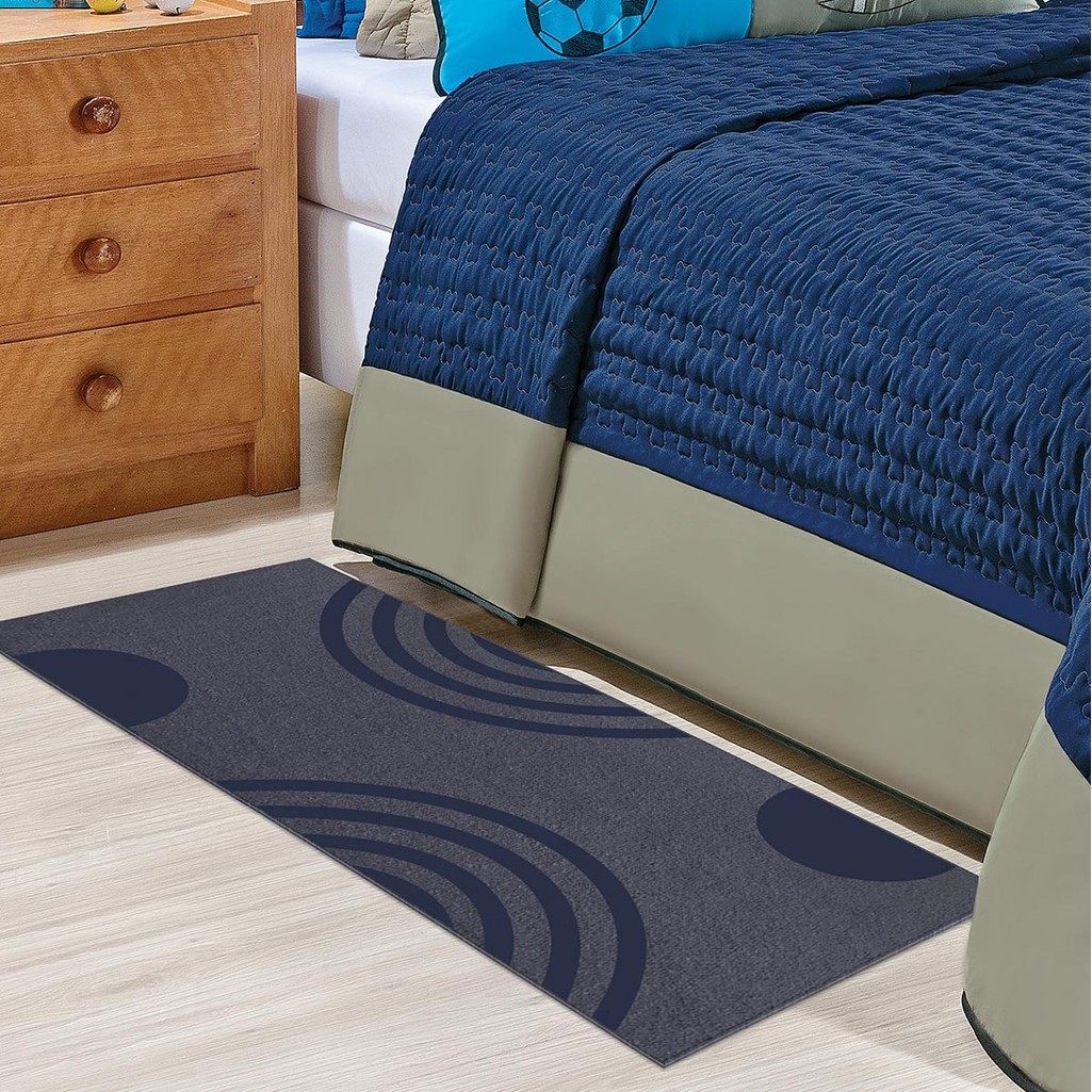 Tapete Passadeira Boho Arcos 45x140cm Chumbo Azul Antiderrapante
