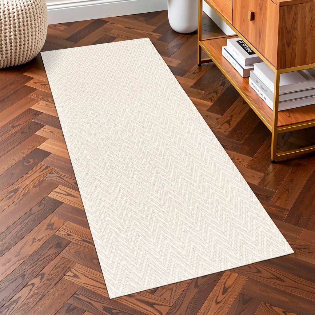 Tapete Passadeira Cozinha Chevron Rústico Antiderrapante 0,65 x 1,50m Cru Bege 100% Algodão Lavável