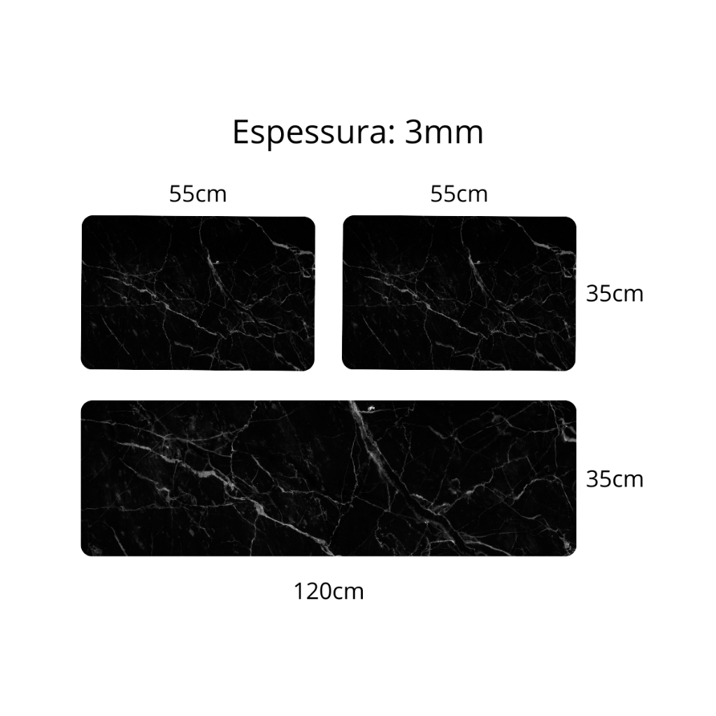 Kit Tapete de Cozinha 3 Peças – Base em Látex | Lavável e Durável Este kit de tapetes para cozinha foi desenvolvido para aliar praticidade, conforto e design moderno ao seu ambiente. Com três peças de tamanhos funcionais, ele é ideal para proteger áreas de maior uso como a pia, o fogão e a bancada, oferecendo mais conforto durante as tarefas do dia a dia. Contém no kit: 2 tapetes de 55 cm x 35 cm 1 passadeira de 120 cm x 35 cm Características do produto: Base em látex antiderrapante: proporciona maior aderência ao piso, aumentando a segurança durante o uso. Face superior texturizada: acabamento de qualidade, com toque agradável e aspecto visual diferenciado. Impressão digital: garante cores nítidas e alta durabilidade da estampa. Lavável: fácil de limpar, pode ser lavado com pano úmido, sabão neutro ou água corrente. Durável: resiste ao uso frequente, mantendo sua aparência e funcionalidade por muito mais tempo. Não sanitizante. Indicado para uso em cozinhas residenciais, o kit pode ser facilmente integrado a diferentes estilos de decoração e é uma solução prática para quem busca funcionalidade sem abrir mão do visual.