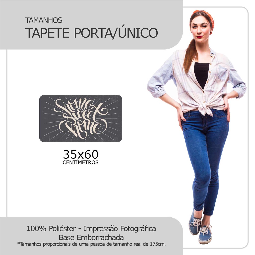 TAPETE PORTA DETALHES DO PRODUTO ESTAMPA DIGITAL • Impressão Fotográfica • Impressão Digital de Alta qualidade e resolução, aplicada através da técnica de termo transferência. Cores vivas, Estampas Modernas, criativas e clássicas, enfim, para todos os gostos e estilos! Sempre acompanhando as tendências de decoração, e oferecendo tudo de mais lindo para você, essa é nossa meta. * As cores dos Tapetes podem ter uma pequena variação, dependendo do seu monitor. BASE EMBORRACHADA • Antiderrapante • Pensando sempre na Qualidade e Segurança, os tapetes AmorePop possuem base Emborrachada Antiderrapante! Com sua base desenvolvida em Látex, proporcionado maior Sensação de Maciez e Conforto. Os tapetes AmorePop possuem costuras reforçadas nas laterais garantindo maior Durabilidade ao produto com excelente acabamento estético. TAMANHOS • Tapete de Porta - 40x60cm