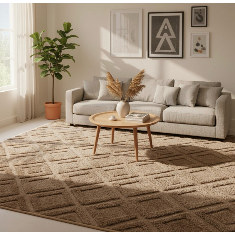 Tapete Sala Antiderrapante Jacquard Com Relevo Geométrico sem Pelo