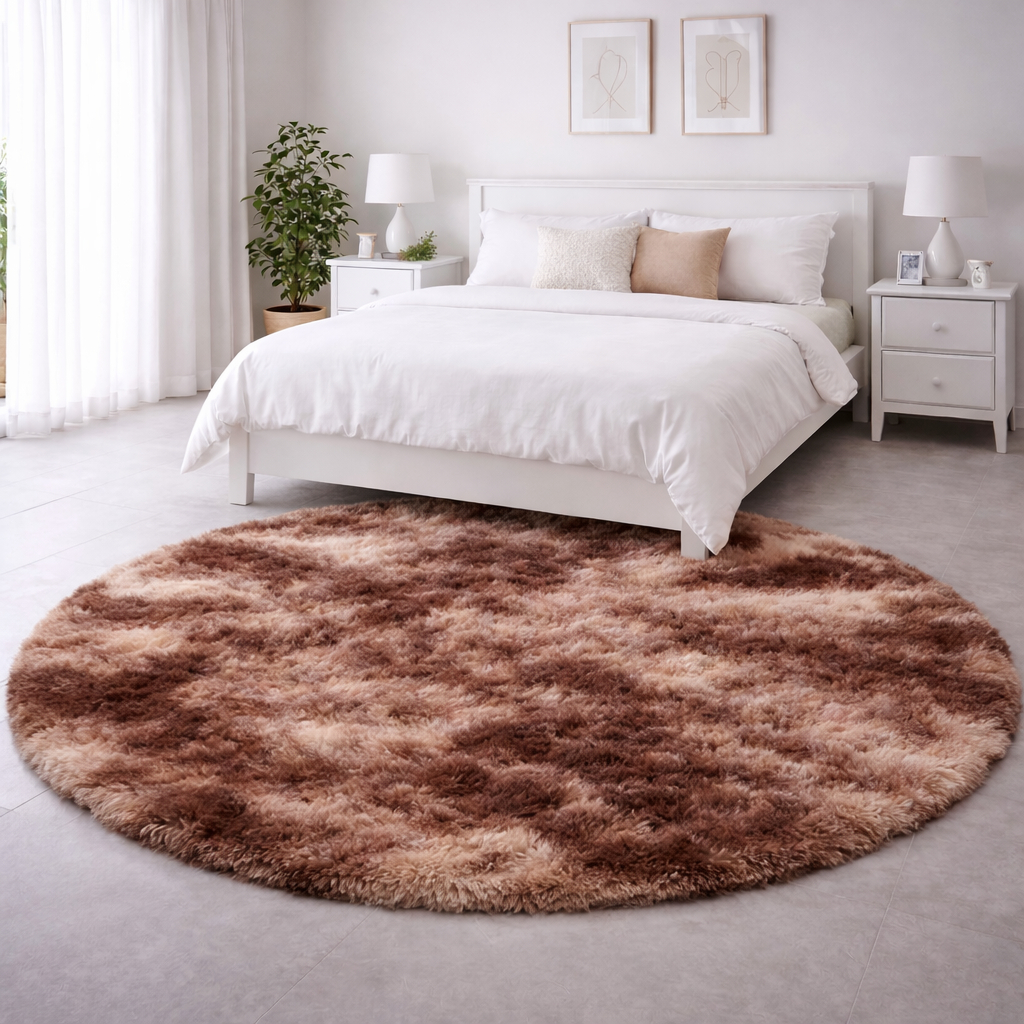 Tapete Sala Felpudo Peludo Mesclado Marrom Redondo 60 Cm