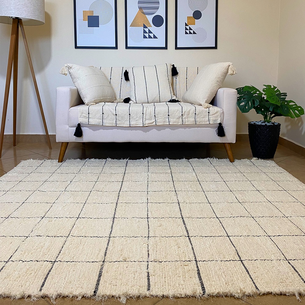 Tapete Vanilla 150X200 Bege Sala Tear Algodão Peludo Boho Grid