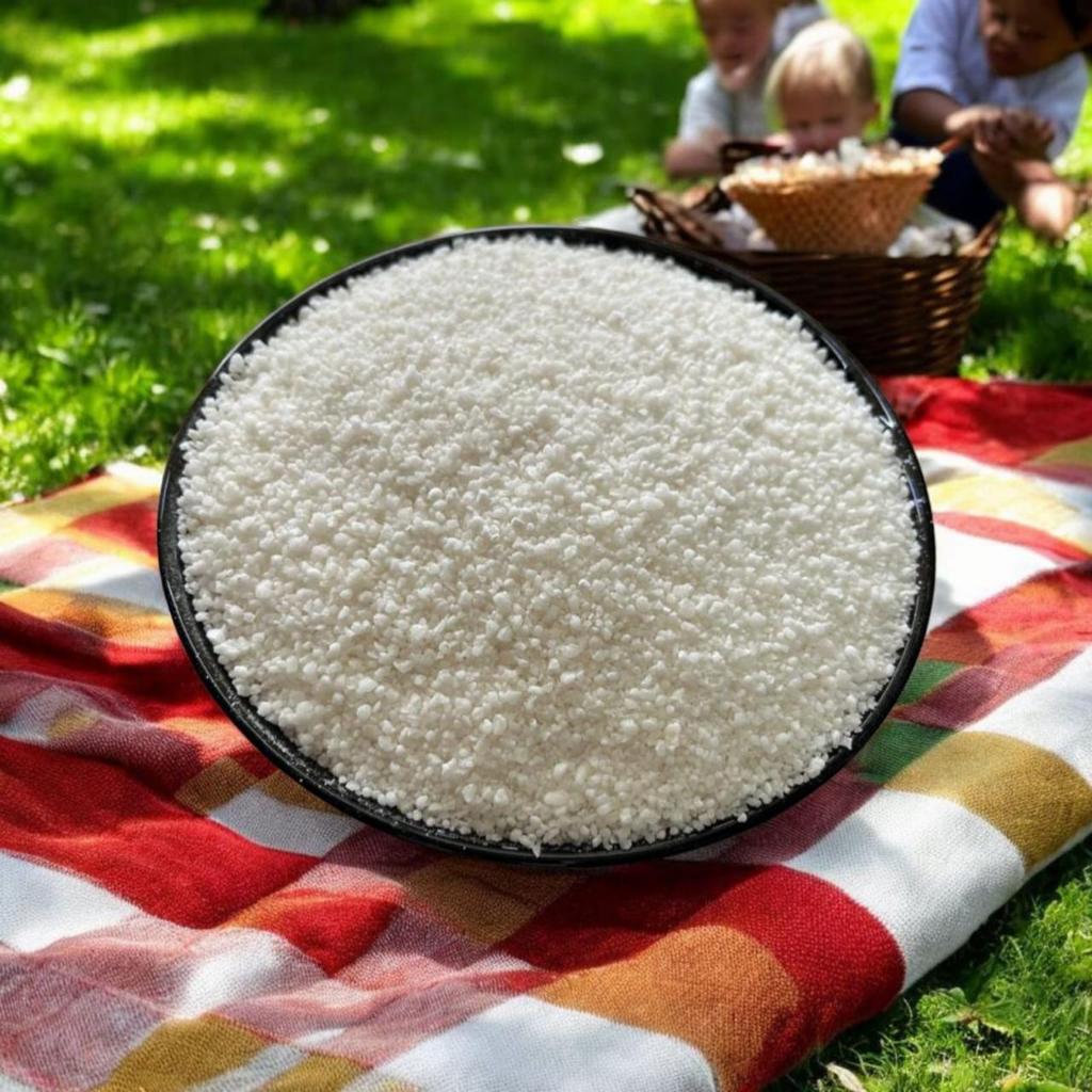 Tapioca Granulada Prata Muito consumida, região Norte do Brasil, a farinha de tapioca granulada é diferente da massa pronta para tapioca, mais comum e facilmente encontrada em mercados pelo país. Ela é composta de bolinhas duras, semelhantes ao sagu, porém mais irregulares. Essa tapioca é um subproduto da goma de mandioca (polvilho hidratado), cujo processo de produção consiste em coloca-la em um tacho quente e remexer até secar e endurecer. Com esse tipo de farinha não é possível fazer a tapioca recheada, assim como não é possível fazer cuscuz com goma de mandioca. Indicada para preparar diversas receitas. A tapioca granulada Prata está em alta porque é considerado um alimento saudável. Ela é rica em carboidrato (amido) e tem baixo teor proteico e de fibras, além de não conter glúten.