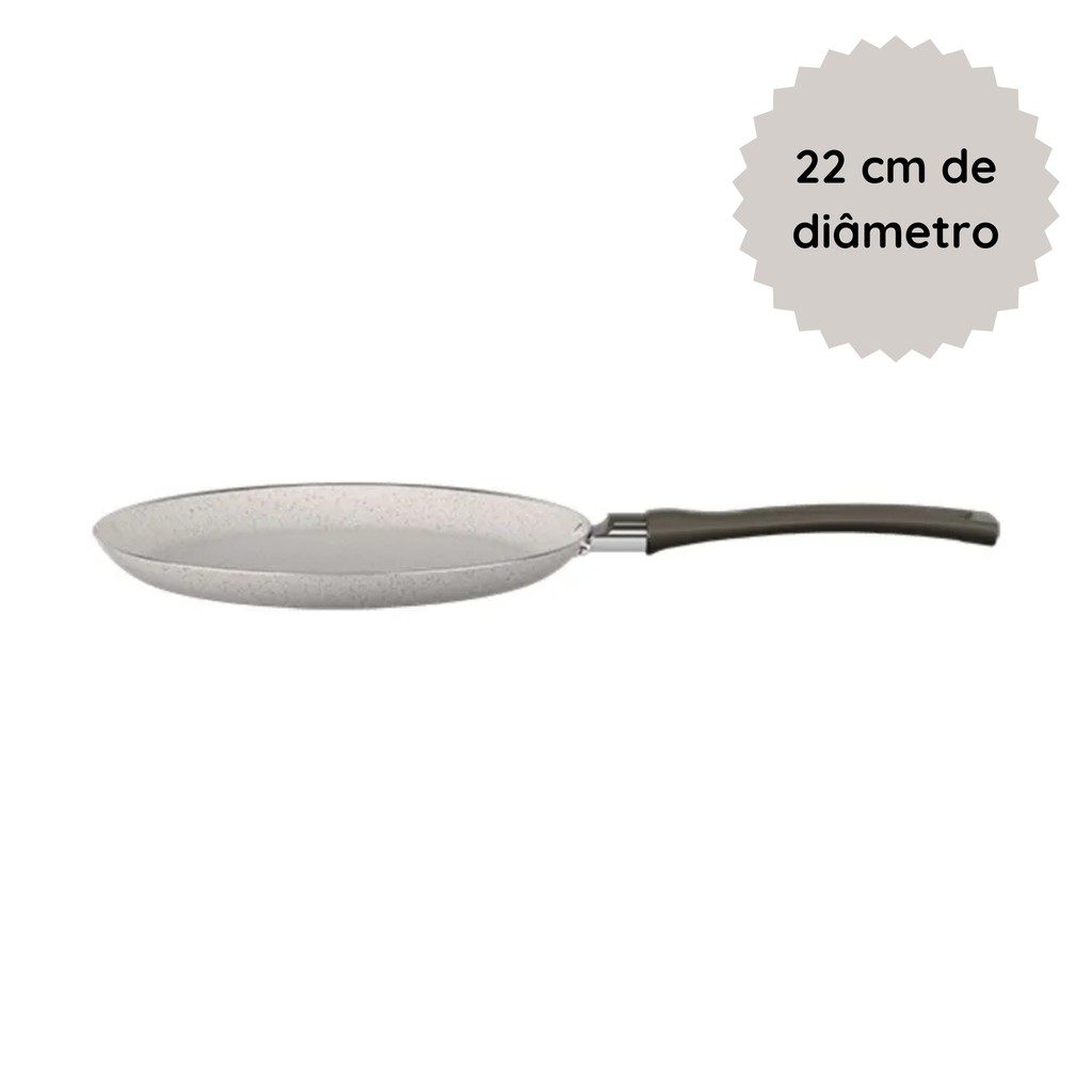 Seja para o dia a dia ou para preparar pratos especiais, poder cozinhar com panelas de alta qualidade e sofisticação traz inspiração para suas receitas. É isso que oferece a Tapioqueira 22 cm Linha Ceramic Life Suprema/Brinox, que leva para sua casa tecnologia e praticidade. De quebra, torna o preparo dos alimentos muito mais fácil, por meio do revestimento antiaderente de alta tecnologia, e agrega ainda mais beleza à sua cozinha com o seu design contemporâneo. Ter uma Tapioqueira e Panquequeira em casa facilita e traz mais praticidade para o dia a dia. Ideal para preparar a tradicional tapioca para o café da manhã ou lanche, é perfeita também para o preparo de outras massas mais finas, como crepioca, omelete e panquecas. Com 22 cm de diâmetro por 2 cm de altura e 0,45L de capacidade, a Tapioqueira Ceramic Life Suprema conta com revestimento antiaderente Mineral Resist em seis camadas, o que torna o preparo de pratos mais saudável, pois cozinha com menos óleo, e a limpeza mais prática. O alumínio da estrutura da panela aquece os alimentos de maneira uniforme e acelera o processo de cocção, possibilitando que você fique menos tempo na cozinha e ainda economize energia. Na cor Vanilla com grânulos Cinzas, esta Tapioqueira traz requinte à decoração. O cabo em baquelite é fabricado com 50% de resíduos recuperados, não aquece. O produto ainda conta com a certificação PFOA free, e classificação de antiaderente A (ótima) pelo Inmetro. As panelas Ceramic Life Suprema são fabricadas no Brasil com energia de fontes 100% renováveis. A Suprema é uma linha completa de panelas para proporcionar as melhores experiências culinárias na sua casa. DIFERENCIAIS: a Tapioqueira 22 cm Linha Ceramic Life Suprema/Brinox tem estrutura de alumínio que distribui o calor de forma homogênea. O revestimento cerâmico antiaderente conta com a tecnologia Mineral Resist, que não deixa o alimento grudar e facilita a limpeza. O cabo é produzido em baquelite com 50% de resíduos regenerados, não aquece e garante o manuseio com segurança. Fabricada no Brasil com fontes de energia 100% renováveis. ANTIADERENTE MINERAL RESIST: o revestimento interno da Tapioqueira 22 cm da Linha Ceramic Life Suprema/Brinox é fabricado com antiaderente Mineral Resist de seis camadas, que contém partículas de cerâmica em sua composição. Além de reduzir a necessidade de óleos e aumentar a resistência, facilita a limpeza, pois os alimentos não grudam. Essa tecnologia traz maior praticidade e segurança (é PFOA Free) para o seu dia a dia na cozinha. Possui classificação de antiaderência A (ótima) pelo Inmetro. MATERIAIS: a Tapioqueira 22 cm Linha Ceramic Life Suprema/Brinox é fabricada com estrutura em alumínio que cozinha por igual e mais rápido. A pintura é na cor Vanilla com grânulos Cinzas. O cabo é produzido em baquelite com 50% de resíduos reutilizados, não aquece e deixa o manuseio seguro. Livre de PFOA, o revestimento interno é com antiaderente Mineral Resist de seis camadas. ESPECIFICAÇÕES TÉCNICAS: a Tapioqueira 22 cm da Linha Ceramic Life Suprema/Brinox tem 22 cm de diâmetro por 2 cm de altura e capacidade para 0,45 L. O cabo é em baquelite 50% regenerado. A pintura é na cor Vanilla com grânulos Cinzas e o revestimento interno é com antiaderente Mineral Resist. INSTRUÇÕES DE USO: fique atento às recomendações para manter a qualidade da Tapioqueira Ceramic Life/Brinox: Antes do primeiro uso, faça o processo de cura: unte a parte interna dos itens com óleo ou qualquer outro tipo de gordura. Leve ao fogo baixo até aquecer o conteúdo e deixe esfriar. Descarte o conteúdo e lave à mão com água morna e esponja macia com sabão neutro ou detergente para eliminar qualquer resíduo; Evite choques térmicos; Não levar à lava-louças, ao forno e ao micro-ondas. TIPOS DE FOGÕES: a Tapioqueira 22 cm Linha Ceramic Life Suprema/Brinox é compatível com fogões a gás. RESUMO: Tapioqueira Linha Ceramic Life Suprema/Brinox; Medidas: 22 cm de diâmetro por 2 cm de altura; Capacidade: 0,45 L; Revestimento Antiaderente Mineral Resist; Cor Vanilla com grânulos Cinzas; Cabo produzido em baquelite 50% regenerado; PFOA livre; Fabricada no Brasil por meio de fontes de energia 100% renováveis. Características: - Marca: Brinox - Modelo: 7244/357 *Imagens Meramente Ilustrativas* Conteúdo da Embalagem: - 01 Tapioqueira 22 cm Revestimento Cerâmico Antiaderente Mineral Resist Cor Vanilla Ceramic Life Suprema Brinox