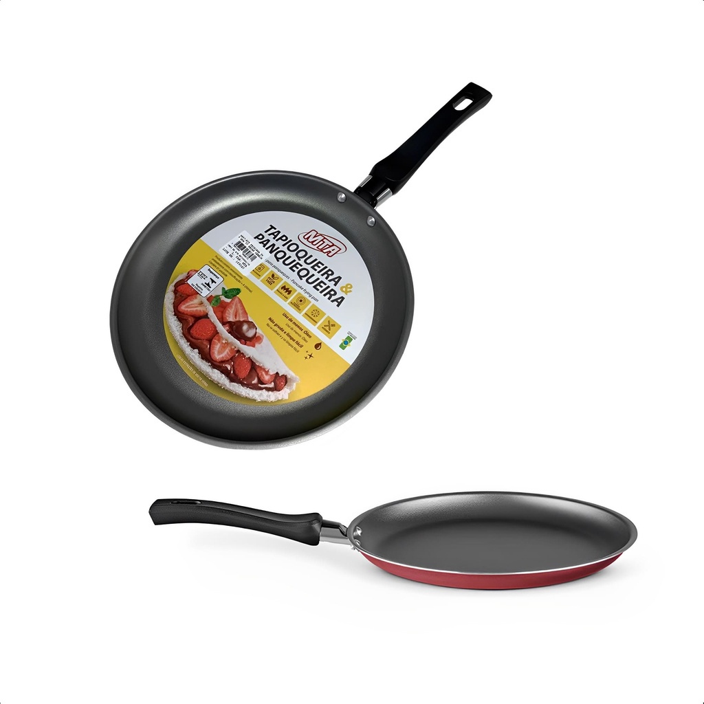 Tapioqueira e Panquequeira Alumínio Revestimento Antiaderente Superflon 22cm Cozinha Frigideira Cereja MTA - 8674