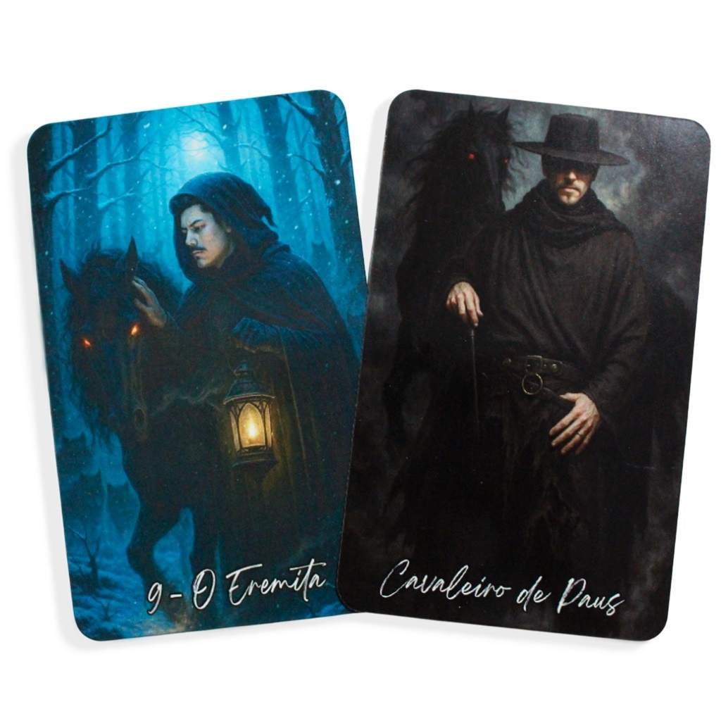 ⚠️ LEIA COM ATENÇÃO ANTES DE COMPRAR ⚠️ ✦Características do Tarot Goético de Orobas:✦ ➜ Produzido em papel próprio para tarôs e oráculos, o mesmo tipo utilizado por muitas editoras do mercado esotérico. ➜ Um pouco mais largas que o tamanho das cartas de tarot tradicionais, por isso não cabem no Sleeven Tarot. Para conservação, recomendo usar saquinhos de tecido para tarot, que você encontra facilmente aqui na Shopee, são baratinhos e de ótima qualidade. ➜ Acompanha caixinha simples e funcional (pode haver leves amassados no transporte, infelizmente comuns nos Correios). ➜ Produção artesanal, feita por encomenda, não é um produto de editora industrial. Após a confirmação do pagamento, o tarot entra em produção. Quando a produção é finalizada, ele é enviado para minha casa, onde eu mesma embalo e preparo com todo carinho para o envio. Eu sei que vocês ficam ansiosos para receber e eu também fico! mas garanto: a espera vale a pena. ✦Importante saber:✦ ➜ Como toda carta de tarot em papel cartonado, se dobrado ou embaralhado com muita força, pode marcar. Isso é natural e acontece também em tarot de editoras renomadas. ➜ Não acompanha livrinho, pois eu precisaria fabricá-lo com alguma empresa de impressão sob demanda, e isso aumentaria significativamente o preço final do produto. Porém, futuramente posso lançar o livro em um anúncio separado, para quem tiver o desejo de adquiri-lo. ➜ O preço do produto não cobre apenas a produção em gráfica, mas também fretes, embalagens e taxas da plataforma, etc.. um valor justo garantindo que o projeto continue existindo. ------------------------------------------------------ Tarot Goético de Orobas🖤🐴 O Tarot Goético de Orobas foi um sugestão do próprio daemon. A ideia surgiu em uma conversa que tive com ele, e toda a orientação estética, simbólica e mágica foi enviada por Orobas. Cada detalhe carrega a energia e o propósito que ele transmitiu durante essa comunicação.