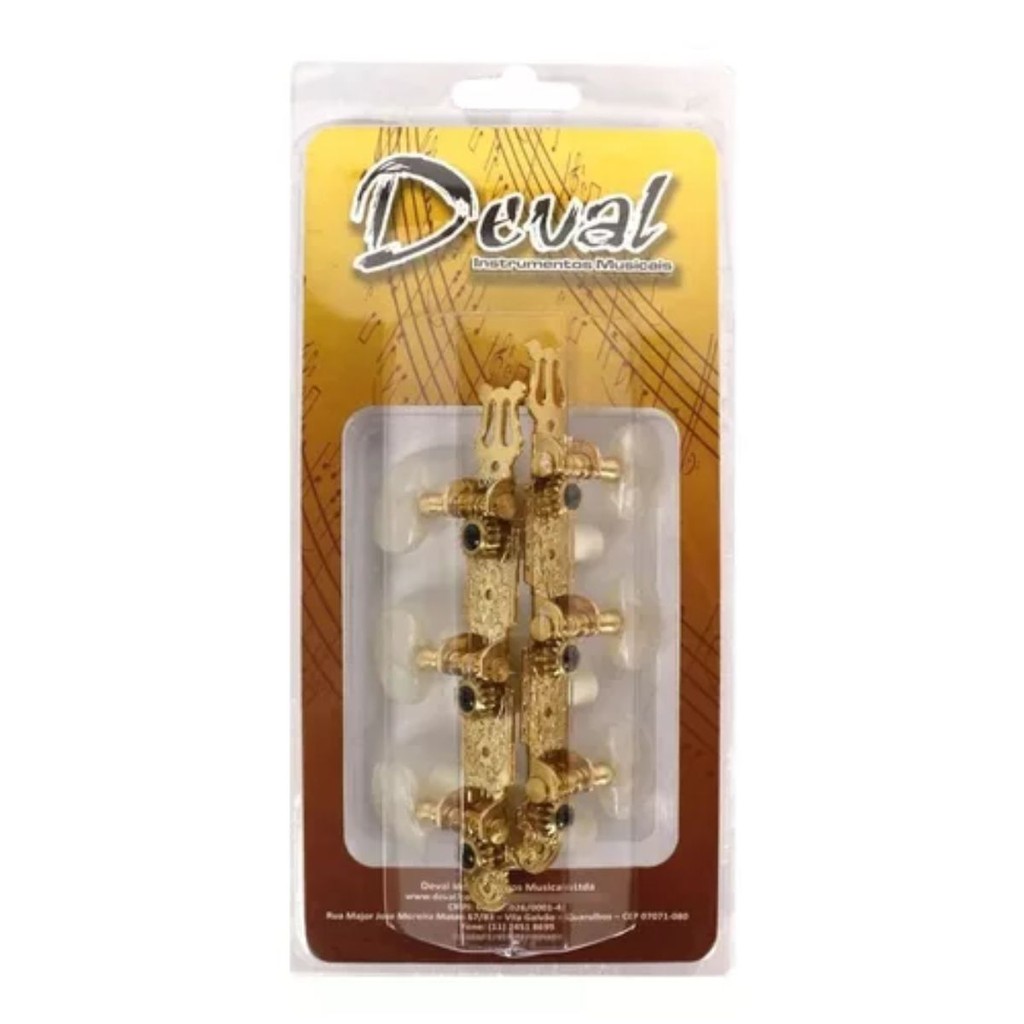 A Deval Instrumentos Musicais Ltda. é uma empresa totalmente brasileira, fundada em Junho de 1994, com o objetivo de fabricar tarraxas para instrumentos de corda, captadores e triggers. Desde então, a Deval vem aprimorando a produtividade de sua unidade industrial para oferecer o melhor em qualidade aos seus consumidores, graças ao investimento contínuo em máquinas e equipamentos de última geração. Especificações técnicas: - Marca: Deval - Utilização: Violão 06 Cordas. - Tipo: Pino Grosso. - Estilo: Fixa - Acabamento Dourado. - Com botão injetado. - Acompanha os parafusos. - Unidade: Par.