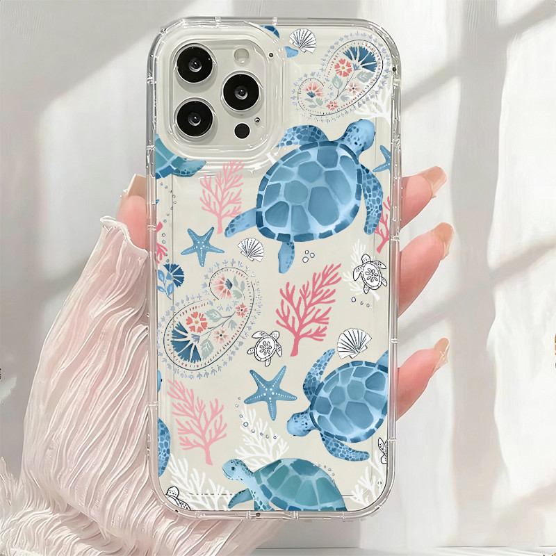 Tartarugas e corais Capinha Capa de Transparente Para iPhone 11 14 15 16 12 17 13 pro max 7/8 plus produto em alta